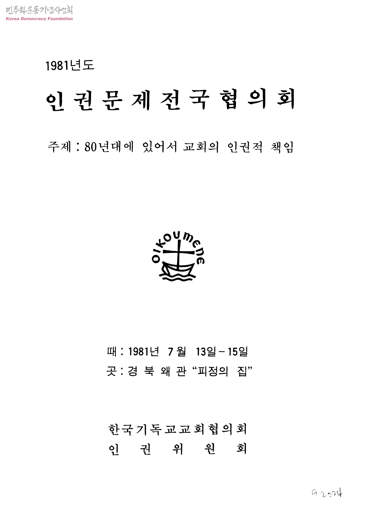 인권문제전국협의회-80년대에 있어서 교회의인권적 책임