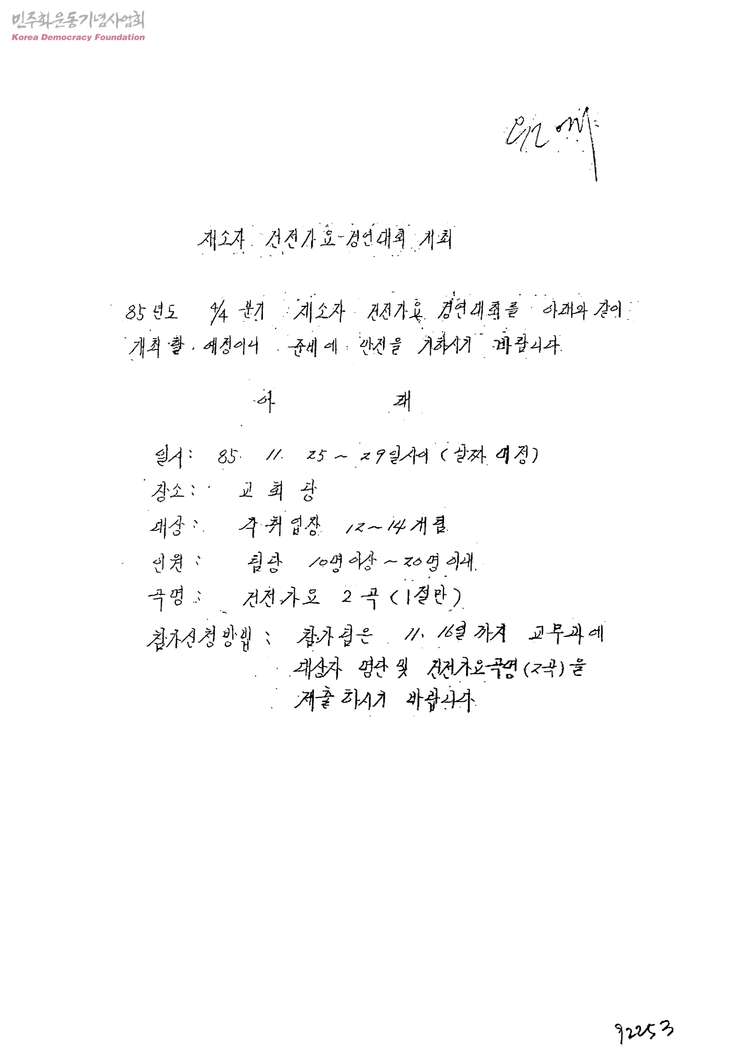 재소자 건전가요 경연대회 개최