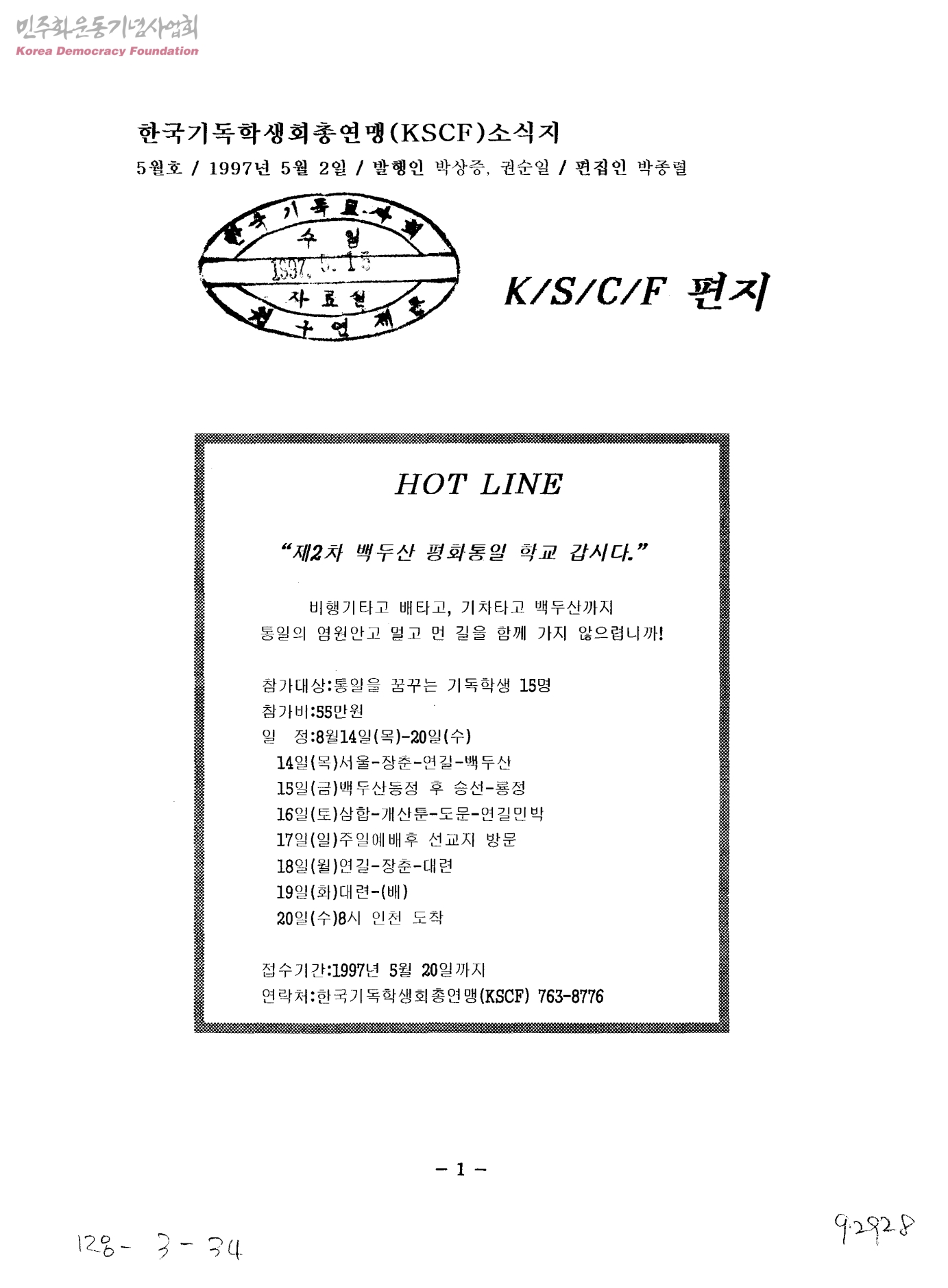 한국기독학생회총연맹(KSCF)소식지 5월호 K/S/C/F 편지