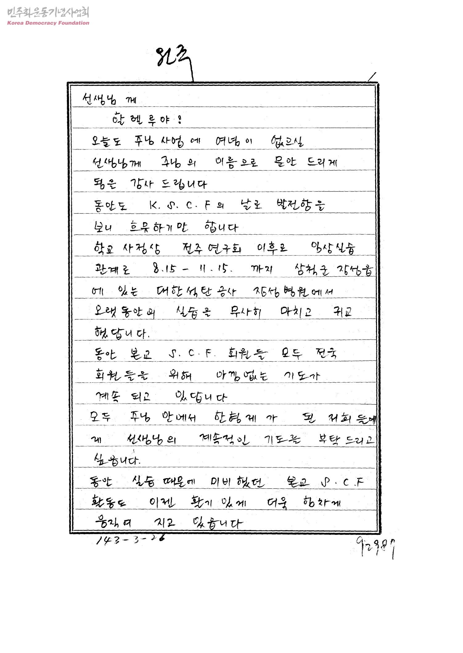 [김정희씨가 이직형씨에게 보낸 편지]