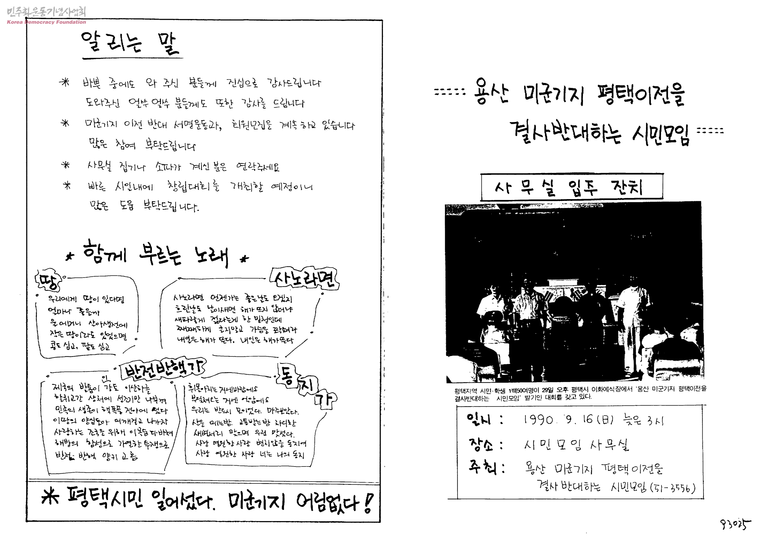 용산 미군기지 평택이전을 결사반대하는 시민모임-사무실 입주 잔치
