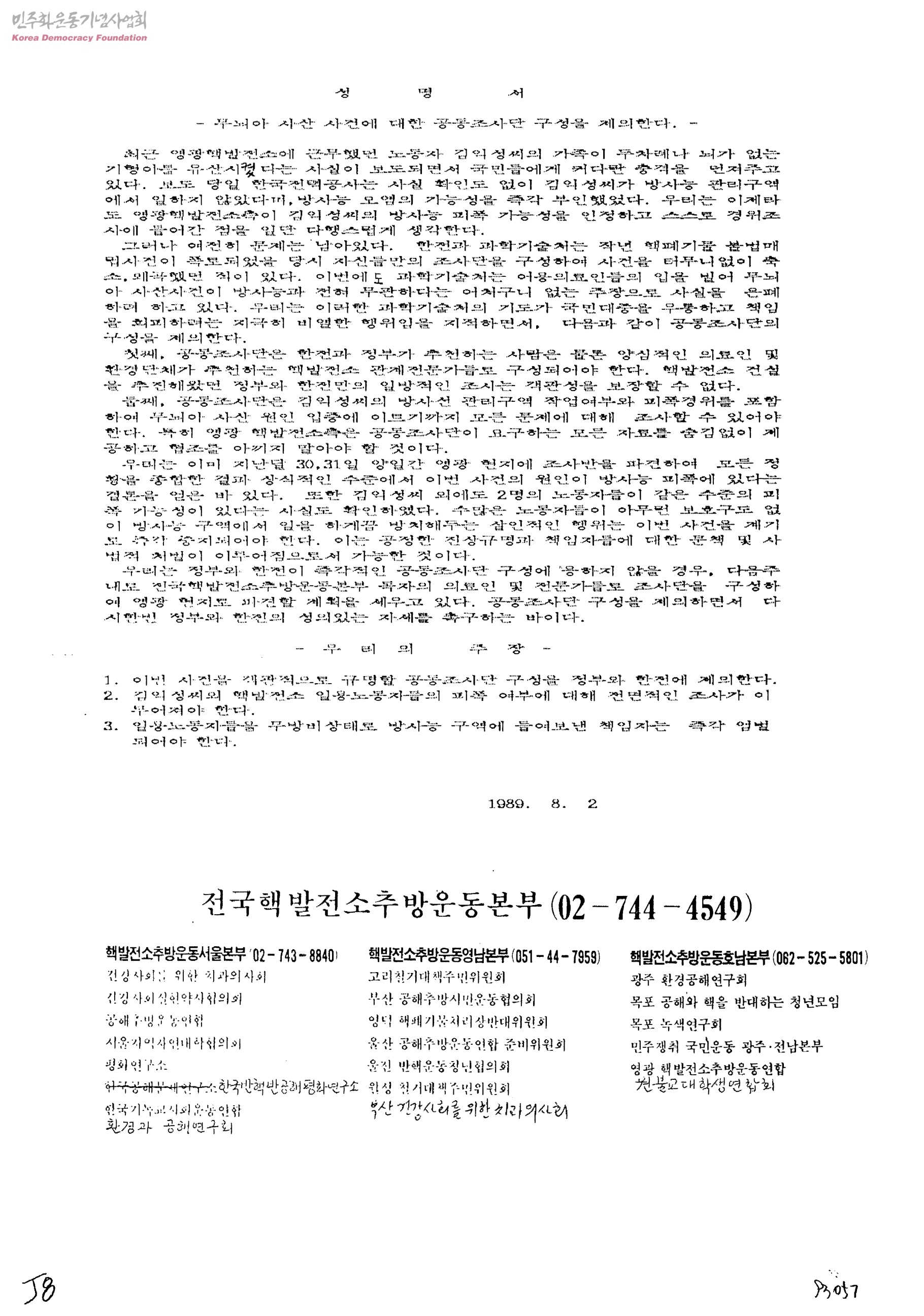 성명서[무뇌아 사산 사건에 대한 공동조사단 구성을 제의한다]