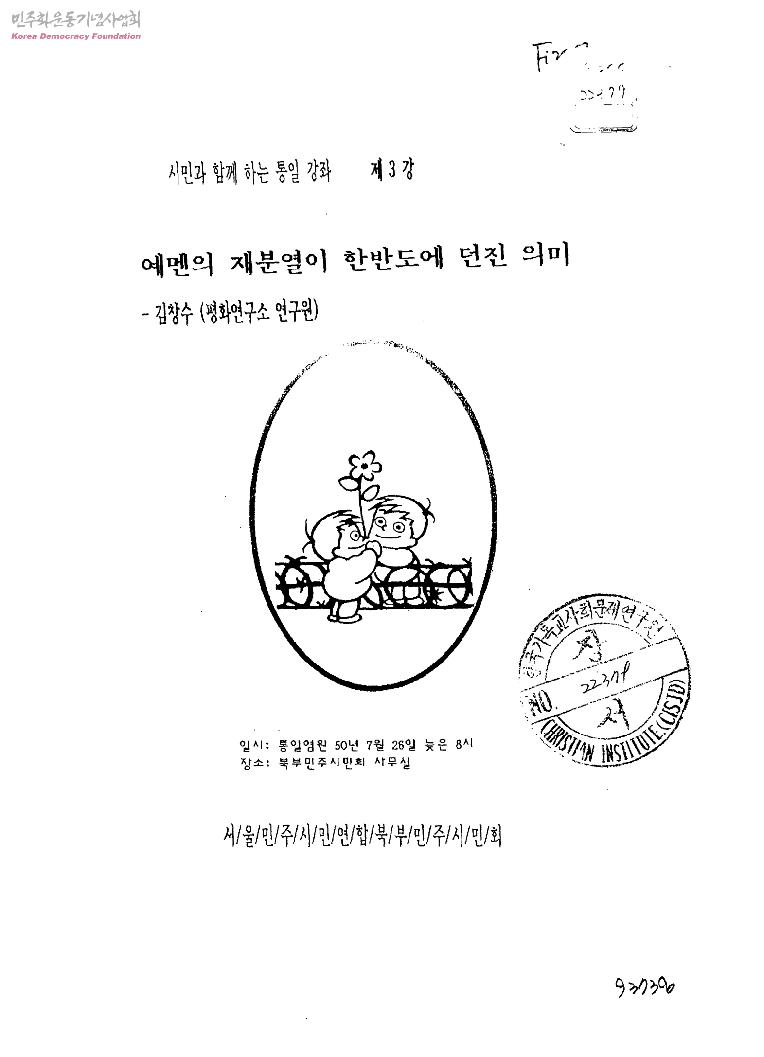 시민과 함께 하는 통일 강좌 제3강 예멘의 재분열이 한반도에 던진 의미-김창수(평화연구소 연구원)