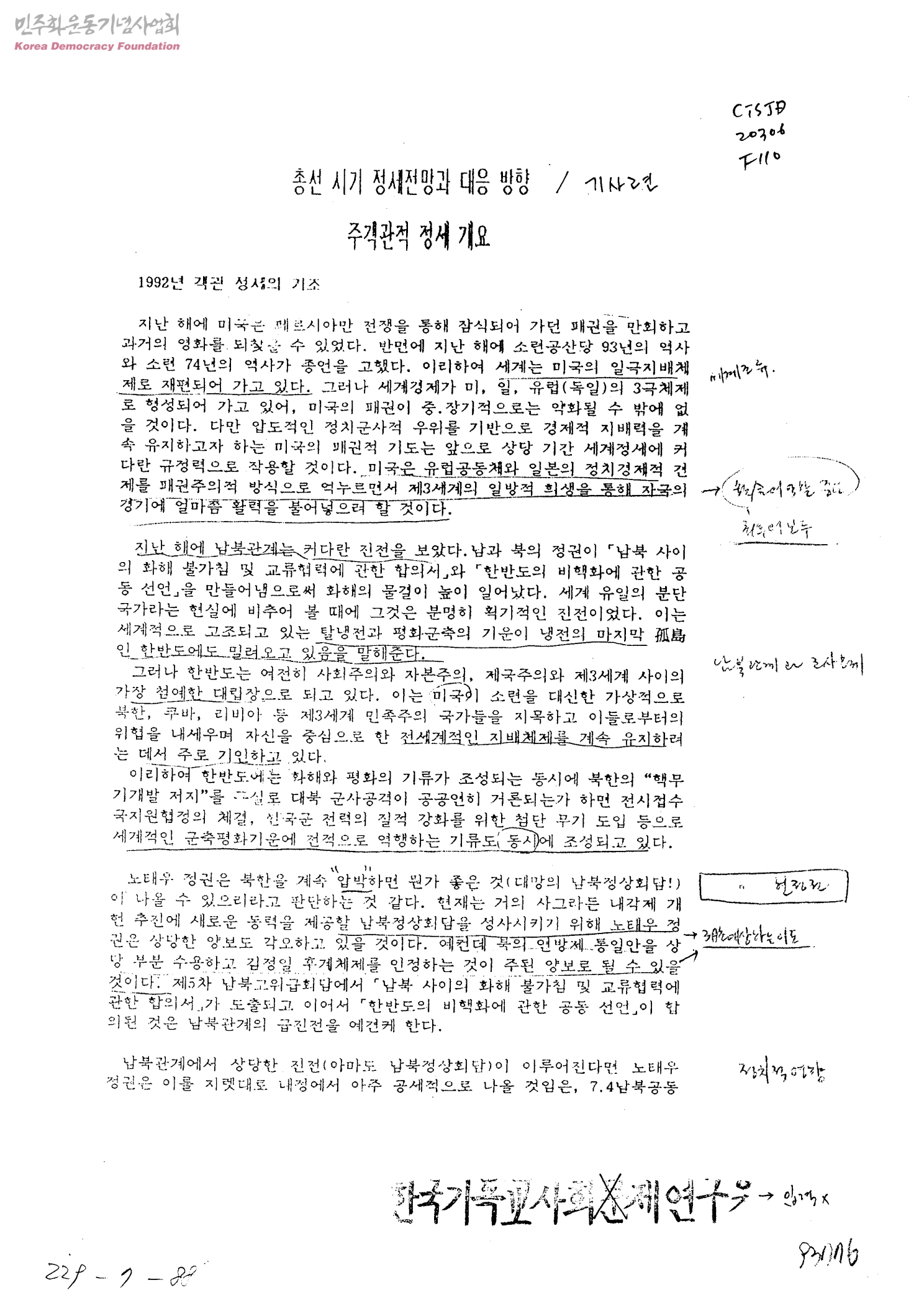 총선 시기 정세전망과 대응 방향 주객관적 정세 개요