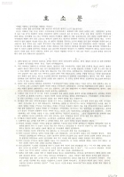 - 1986년 구로공단 대한광학·남성·롬·협진봉제 임금인상투쟁 관련 내용, 생활임금제와 삼민헌법쟁취 등을 주장하는 내용