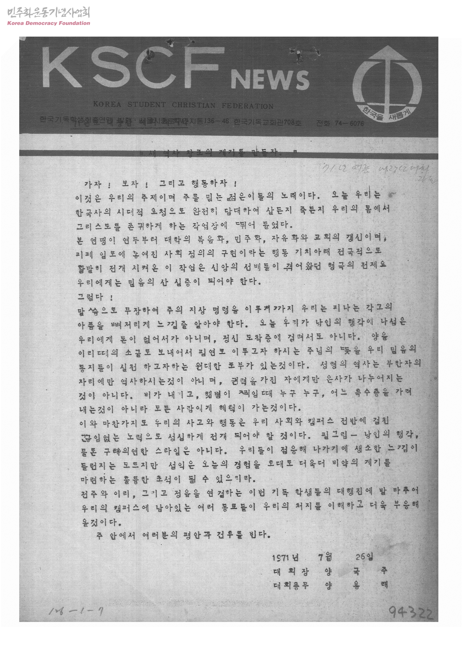 KSCF NEWS-"새 역사 창조의 계기를 만들자."