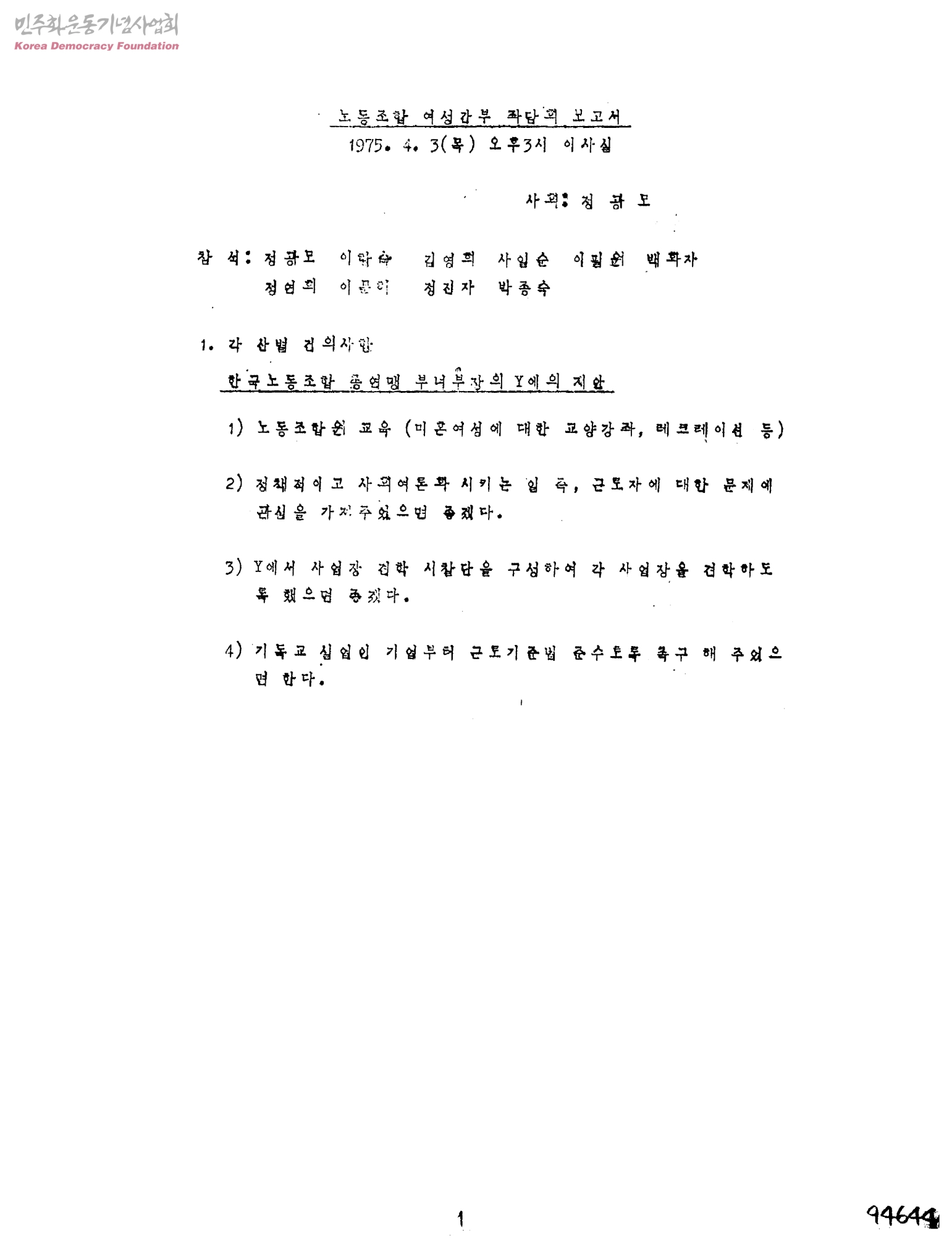 노동조합 여성간부 좌담회 보고서