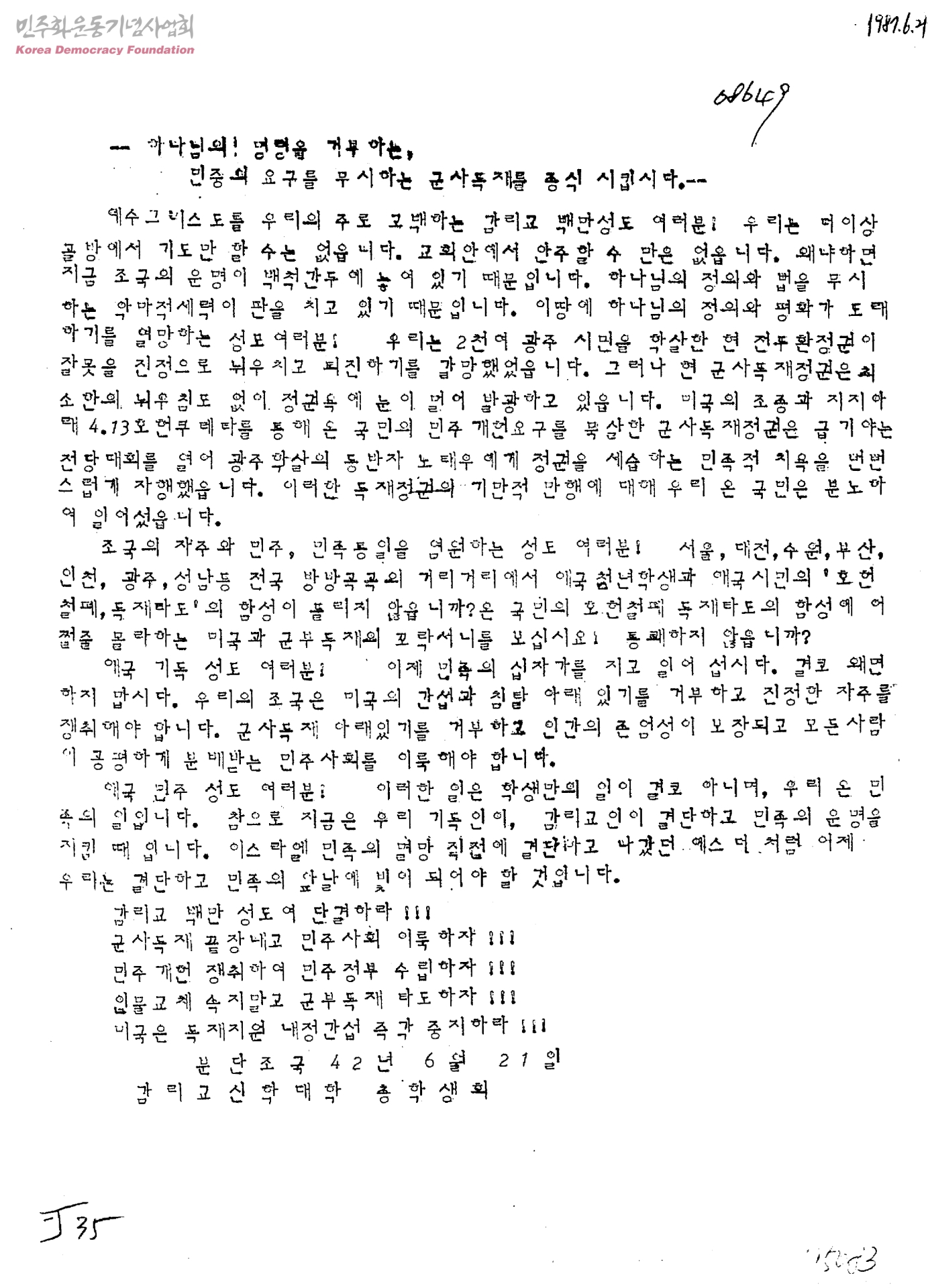 하나님의 명령을 거부하는 민중의 요구를 무시하는 군사독재를 종식 시킵시다