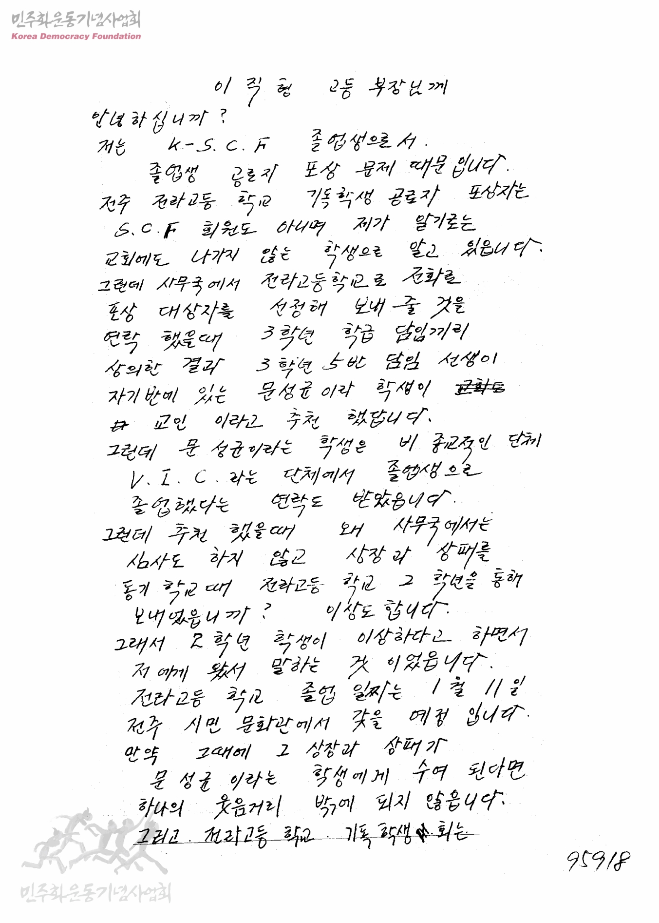 [전주전라고등학교기독학생회가 이직형부장에게 보내는 편지]