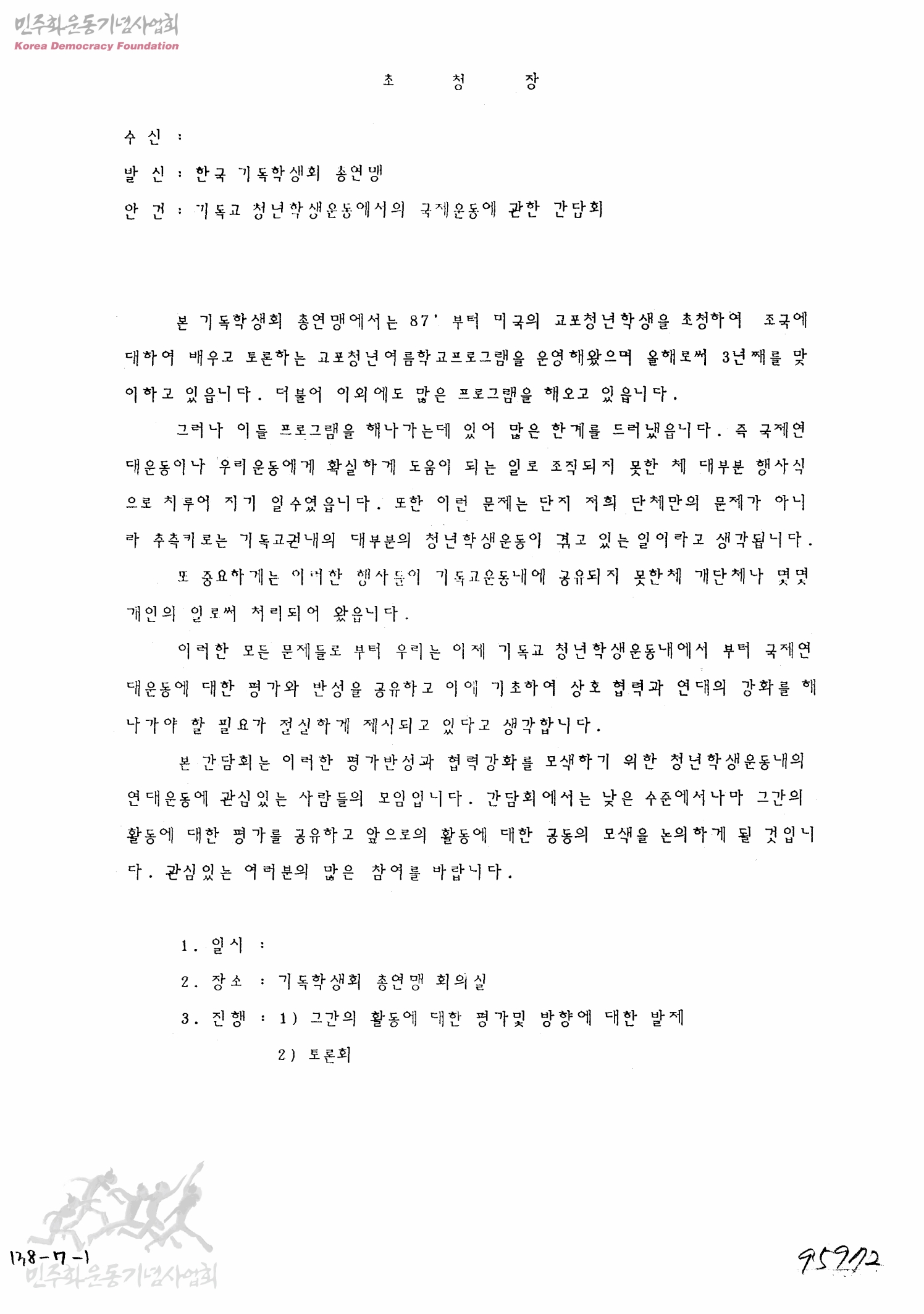 초청장-기독교 청년학생운동에서의 국제운동에 관한 간담회[발신:한국 기독학생회 총연맹]