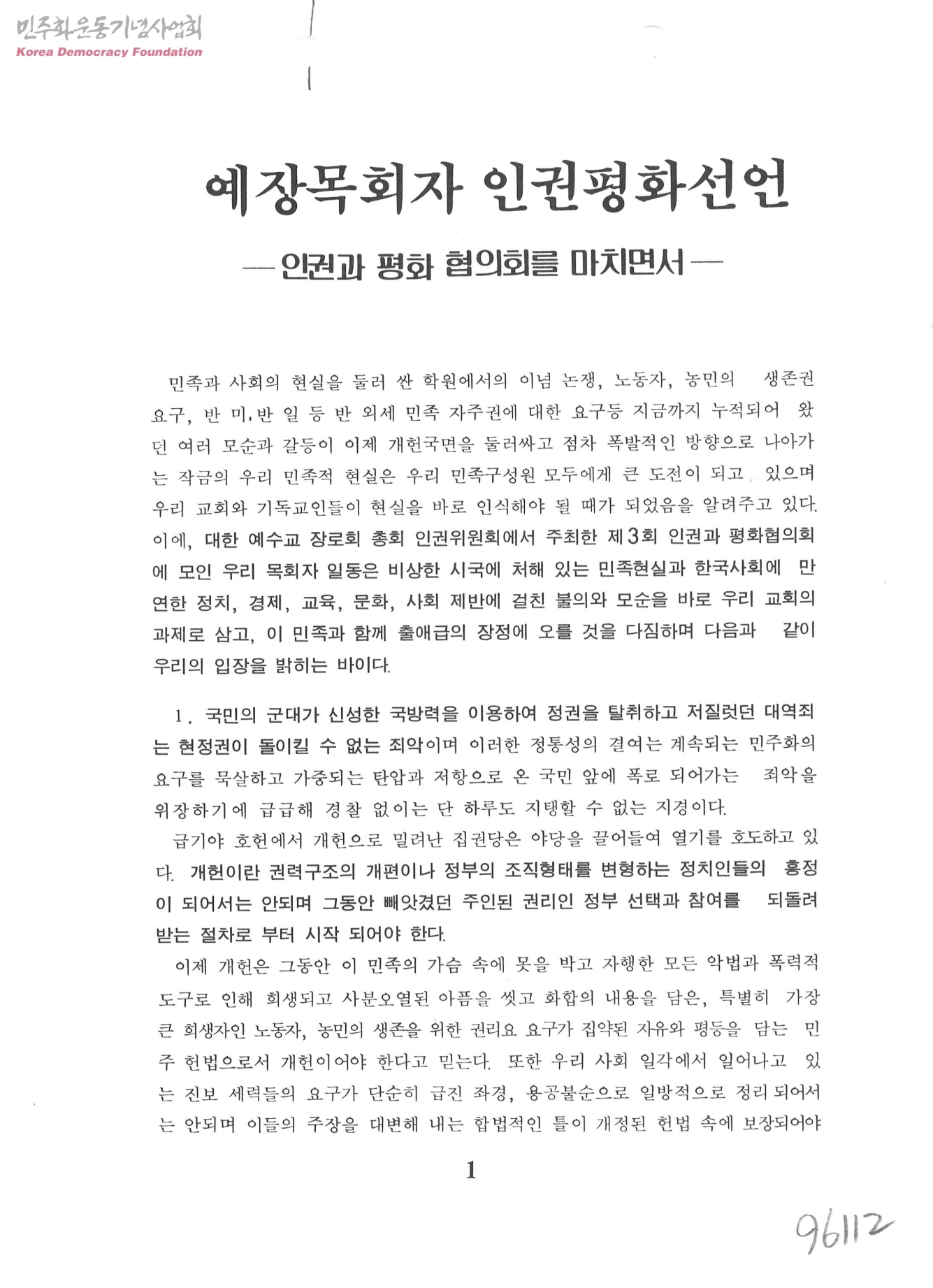 예장목회자 인권평화선언-인권과 평화 협의회를 마치면서