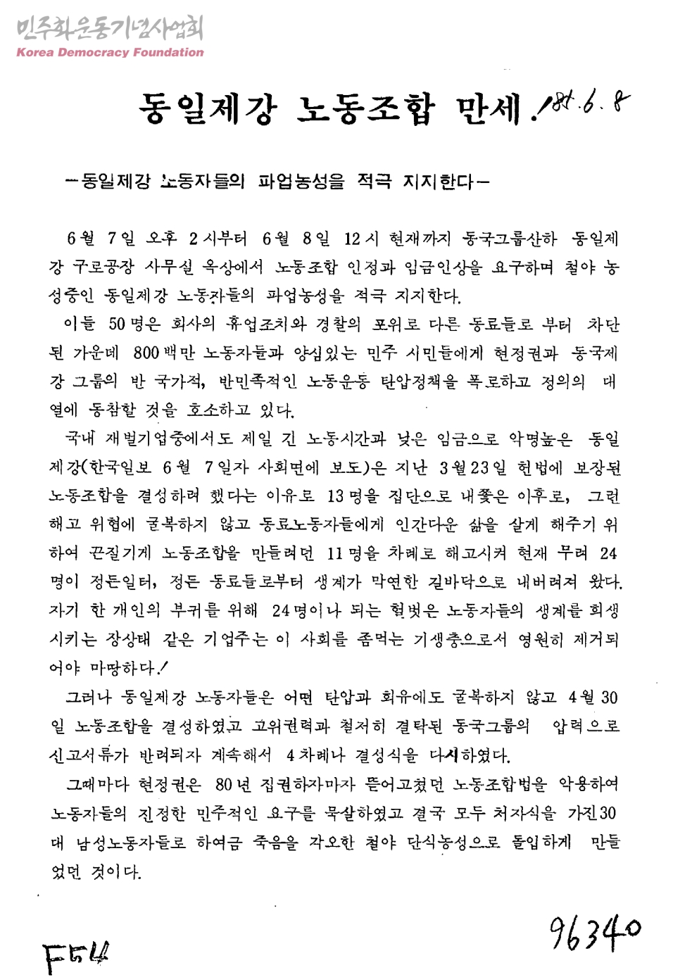 동일제강 노동조합 만세!동일제강 노동자들의 파업농성을 적극 지지한다