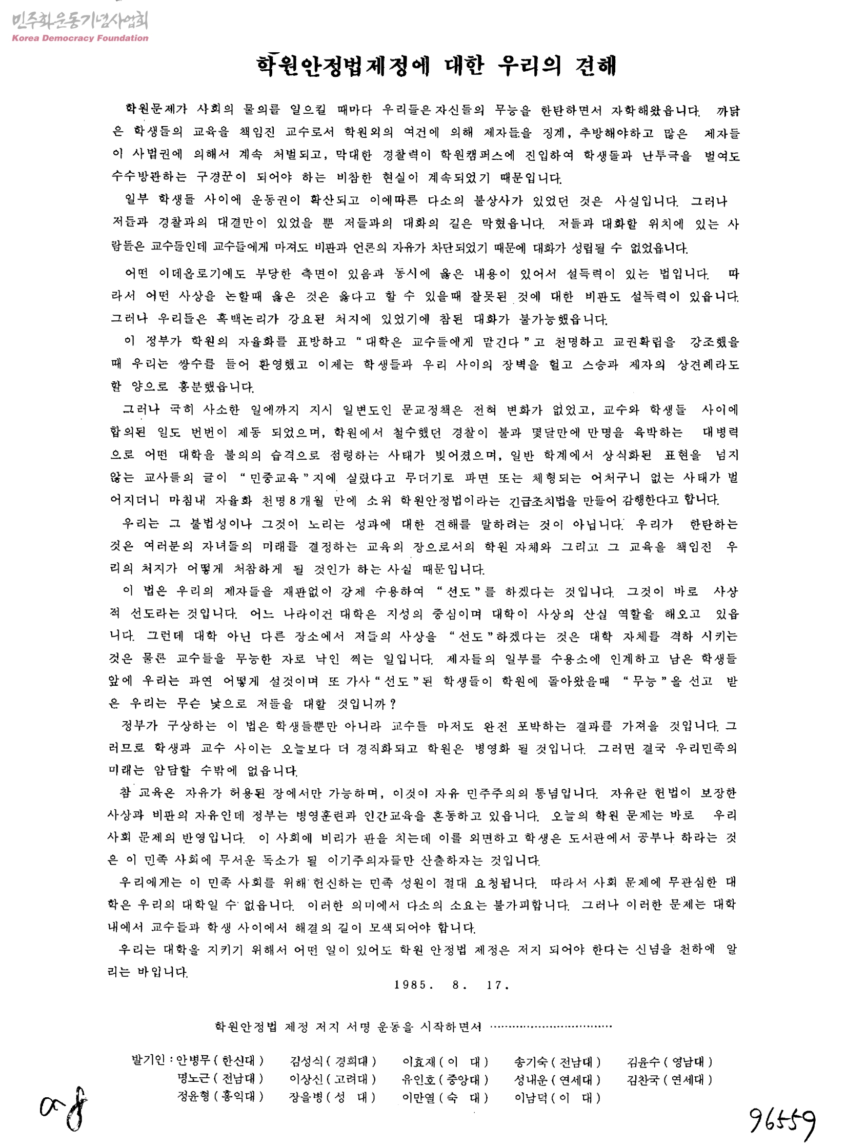 - 안병우, 김성식, 이효재, 송기숙, 김윤수, 명노근, 이상신, 유인호, 성내운, 김찬국, 정윤형, 장을별, 이만열, 이남덕