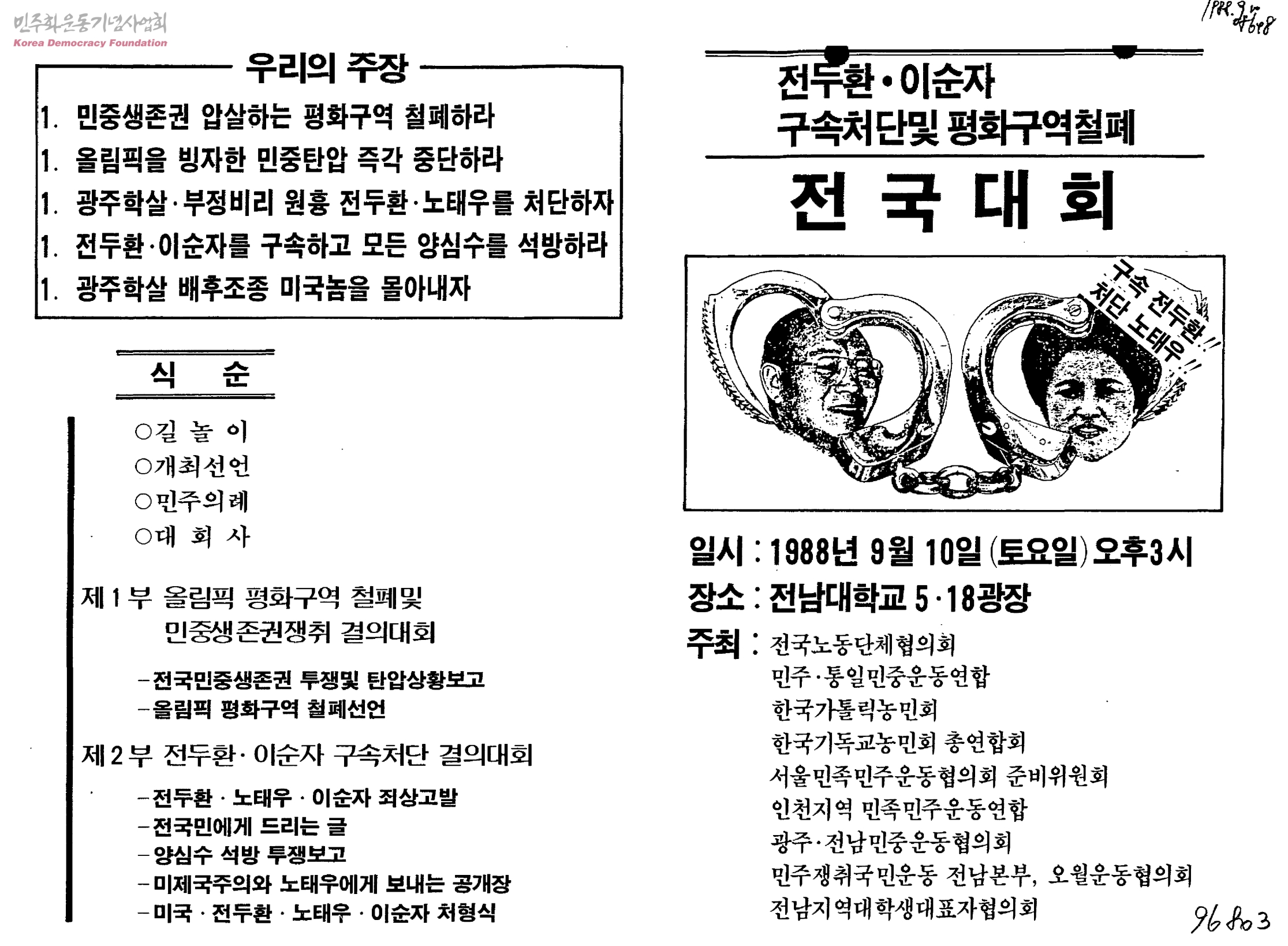 전두환.이순자 구속처단및 평화구역철폐 전국대회