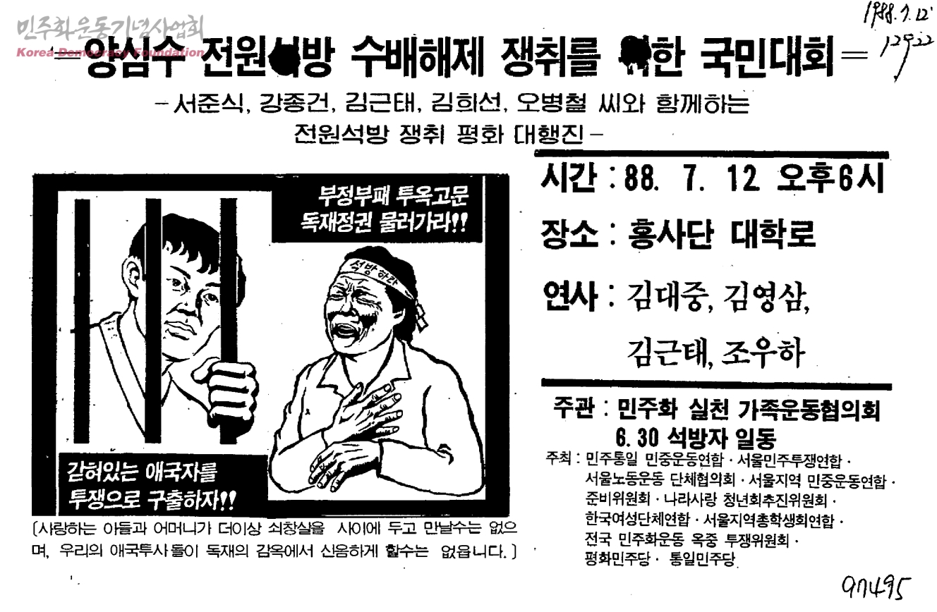 양심수 전원석방 수배해제 쟁취를 위한 국민대회-서준식, 강종건, 김근태, 김희선, 오병철씨와 함께하는 전원석방 쟁취 평화 대행진