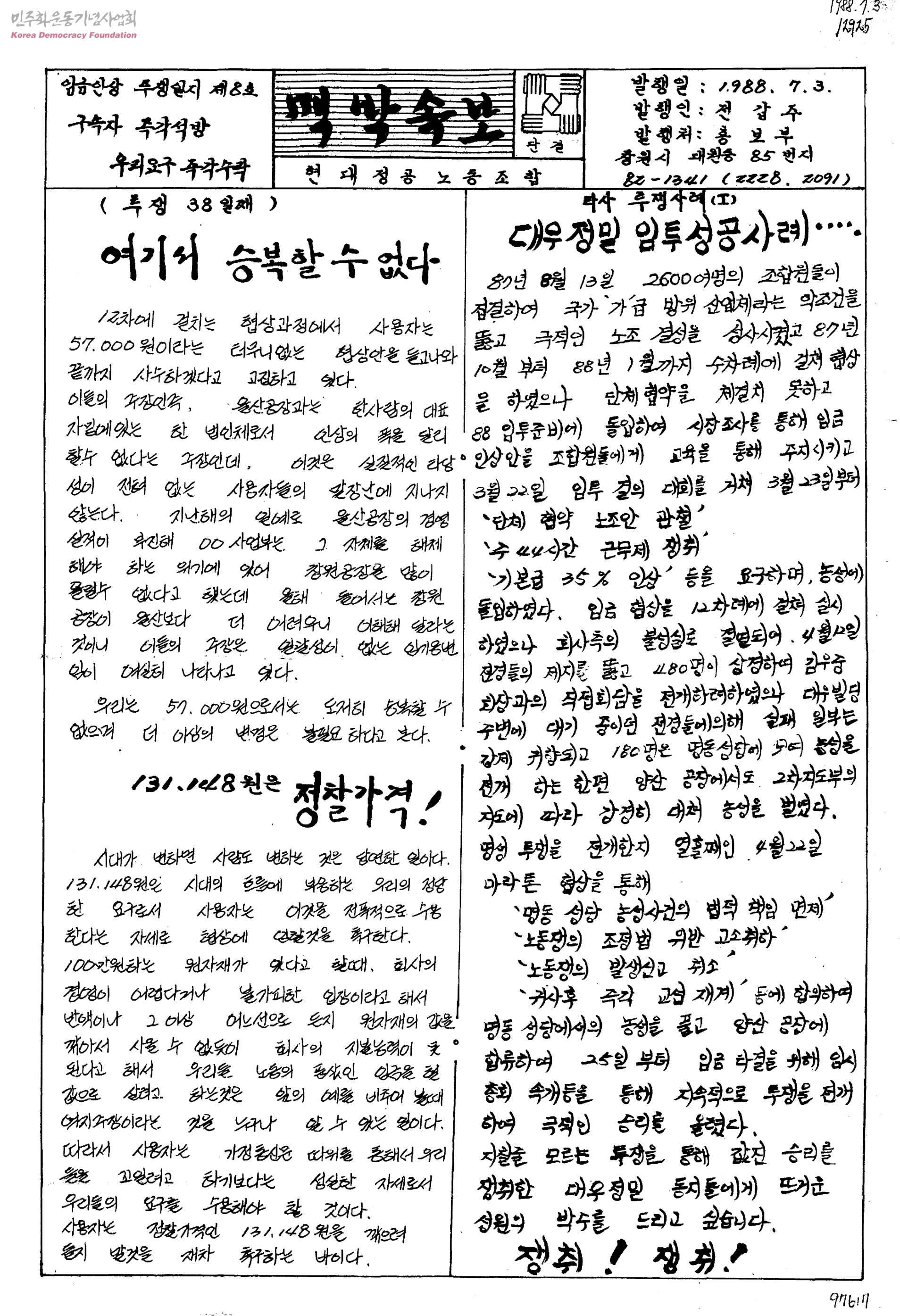 - 생산자 및 기증자가 ‘박용수’인 사진의 사용은 구매신청을 클릭하여 직접 사진 구매 신청을 하실 수 있습니다. 생산자 및 기증자가 ‘경향신문사’인 사진의 사용은 경향신문사 담당자(02-3701-1635)를 통해 구매하실 수 있습니다. 그 외의 생산자 및 기증자는 민주화운동기념사업회 사료관 담당자( h_jungwon@kdemo.or.kr / 031-361-9586 )에 문의바랍니다.
