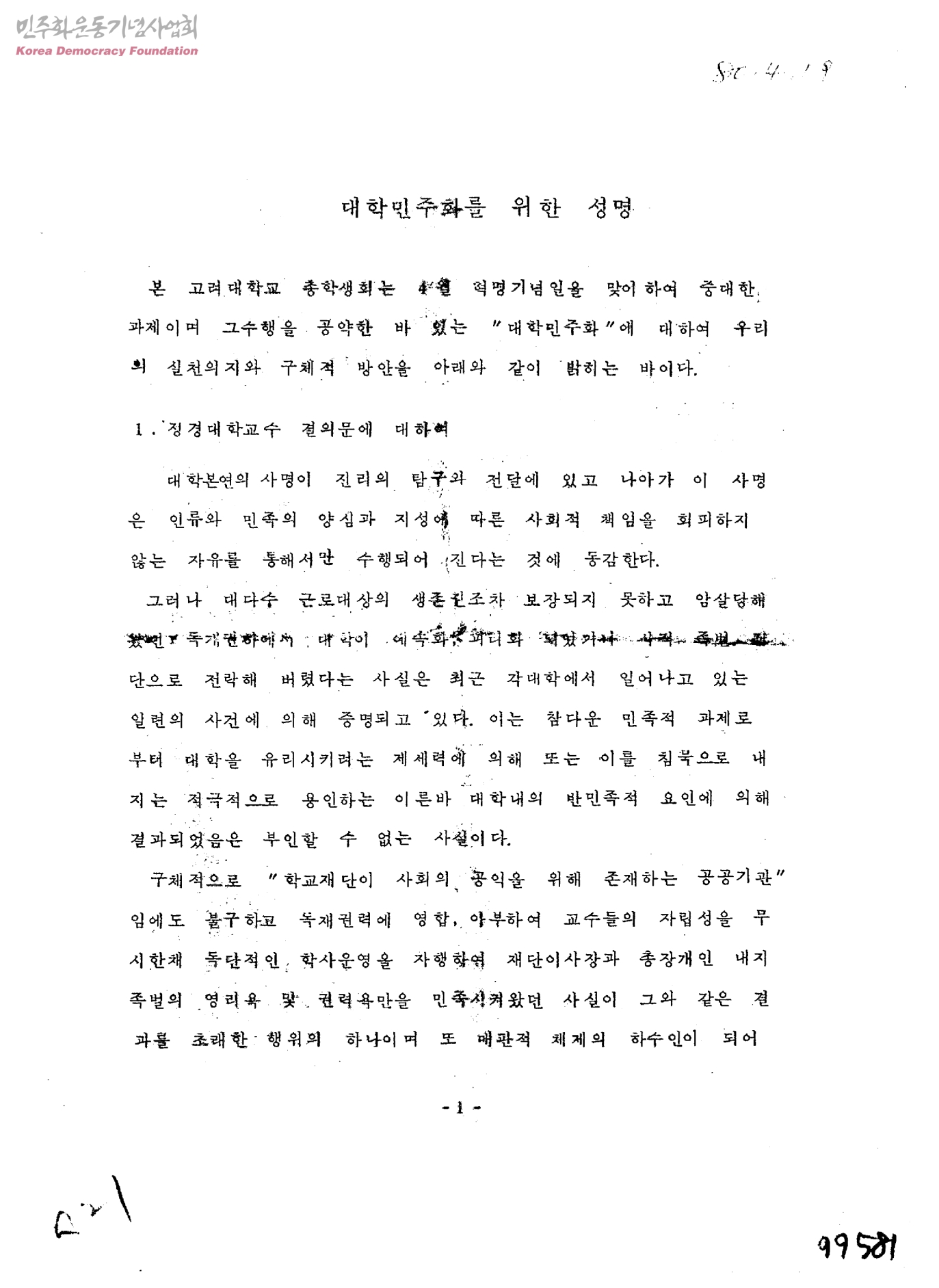 대학민주화를 위한 성명