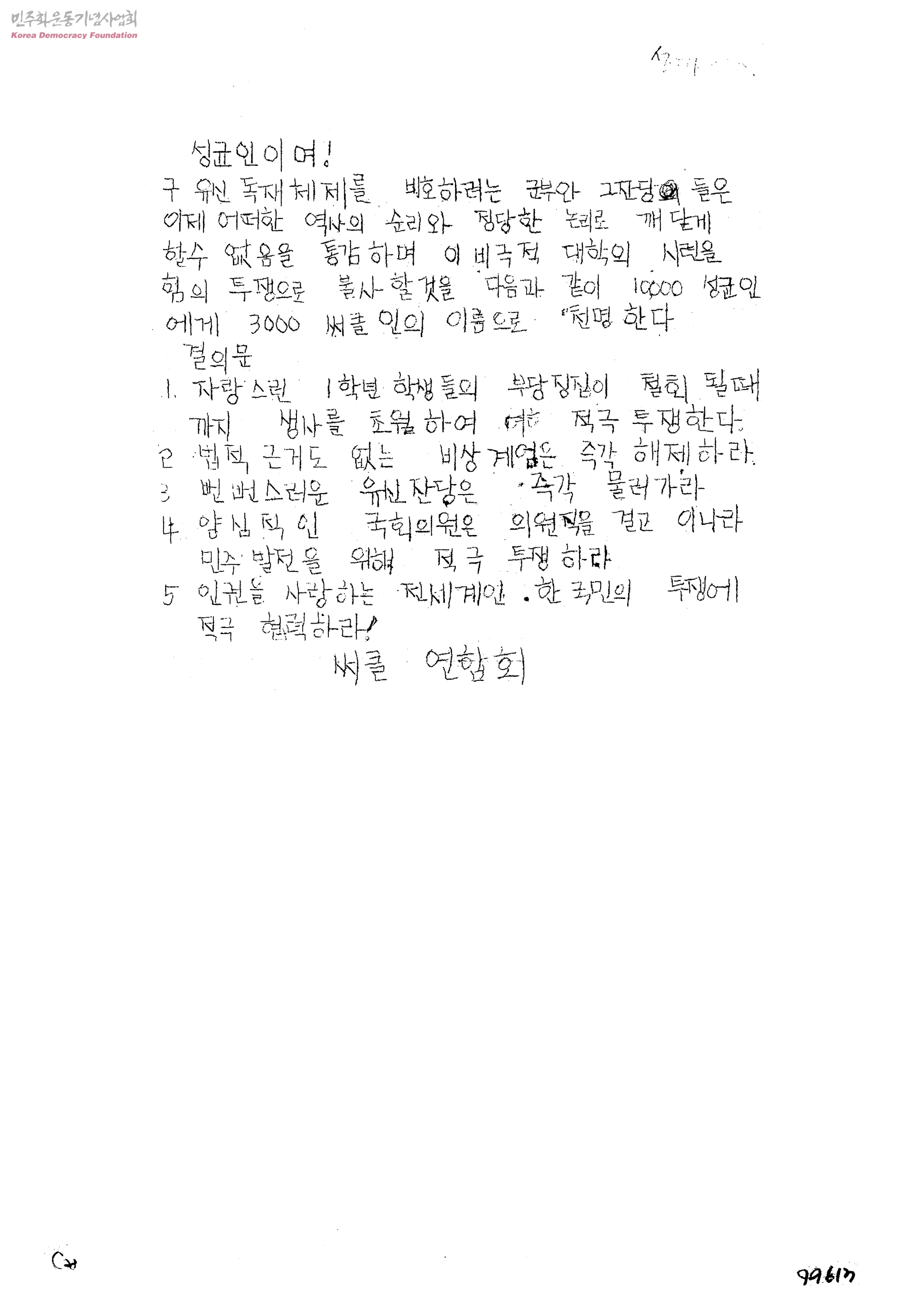 - 생산자 및 기증자가 ‘박용수’인 사진의 사용은 구매신청을 클릭하여 직접 사진 구매 신청을 하실 수 있습니다. 생산자 및 기증자가 ‘경향신문사’인 사진의 사용은 경향신문사 담당자(02-3701-1635)를 통해 구매하실 수 있습니다. 그 외의 생산자 및 기증자는 민주화운동기념사업회 사료관 담당자( hyunchaek@kdemo.or.kr / 02-6440-8961 )에 문의바랍니다.