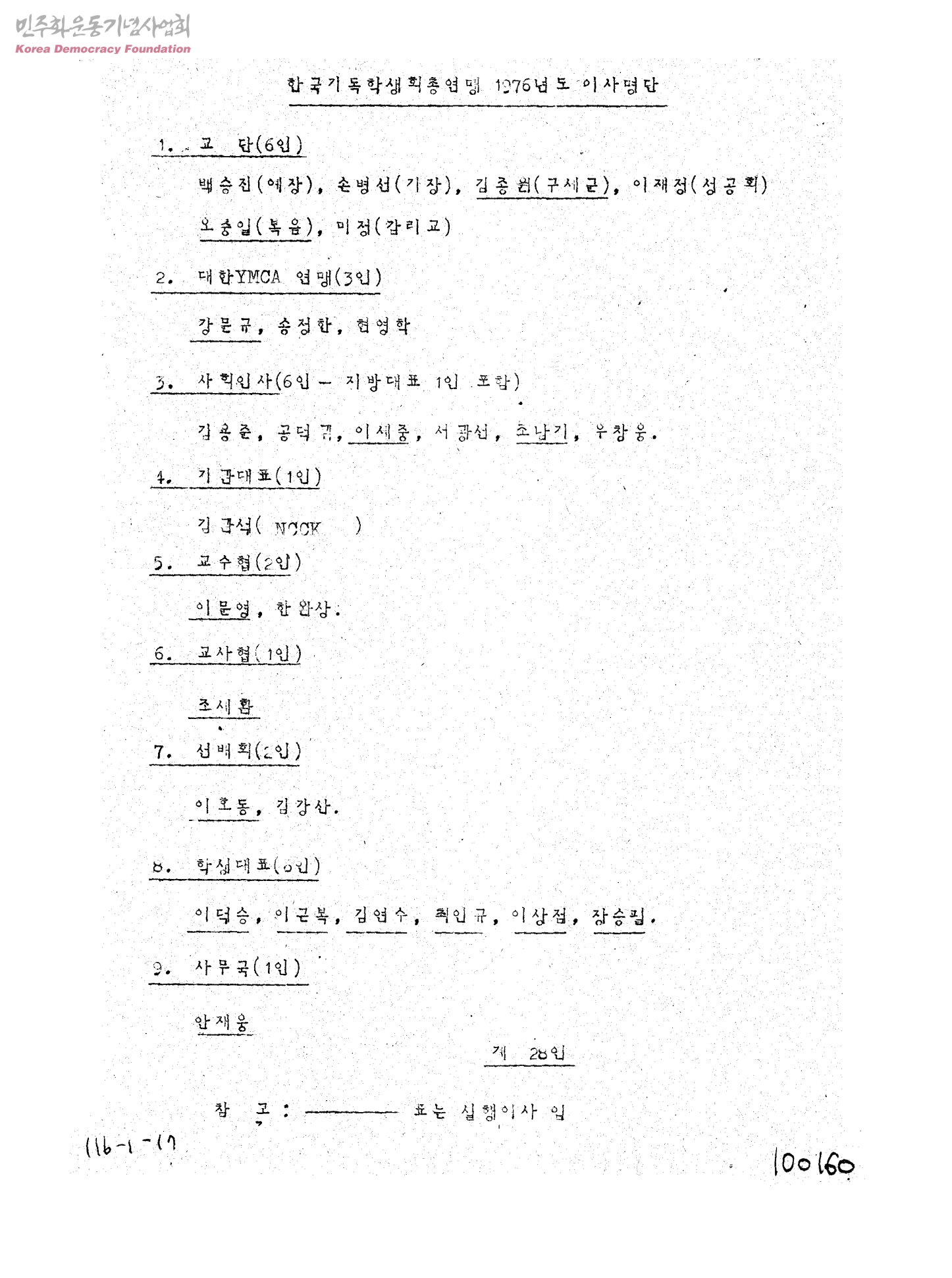 한국기독학생회총연맹 1976년도 이사명단