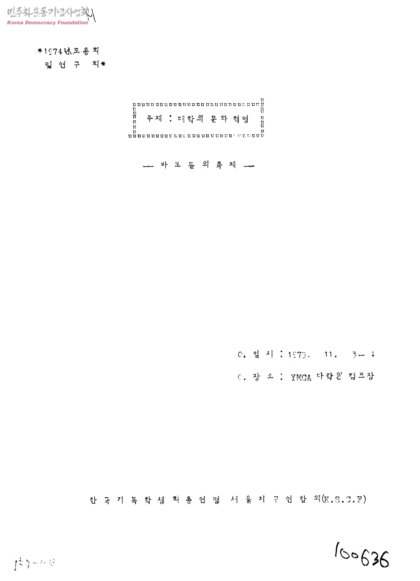1974년도 총회 및 연구회 대학의 문화혁명-바보들의 축제