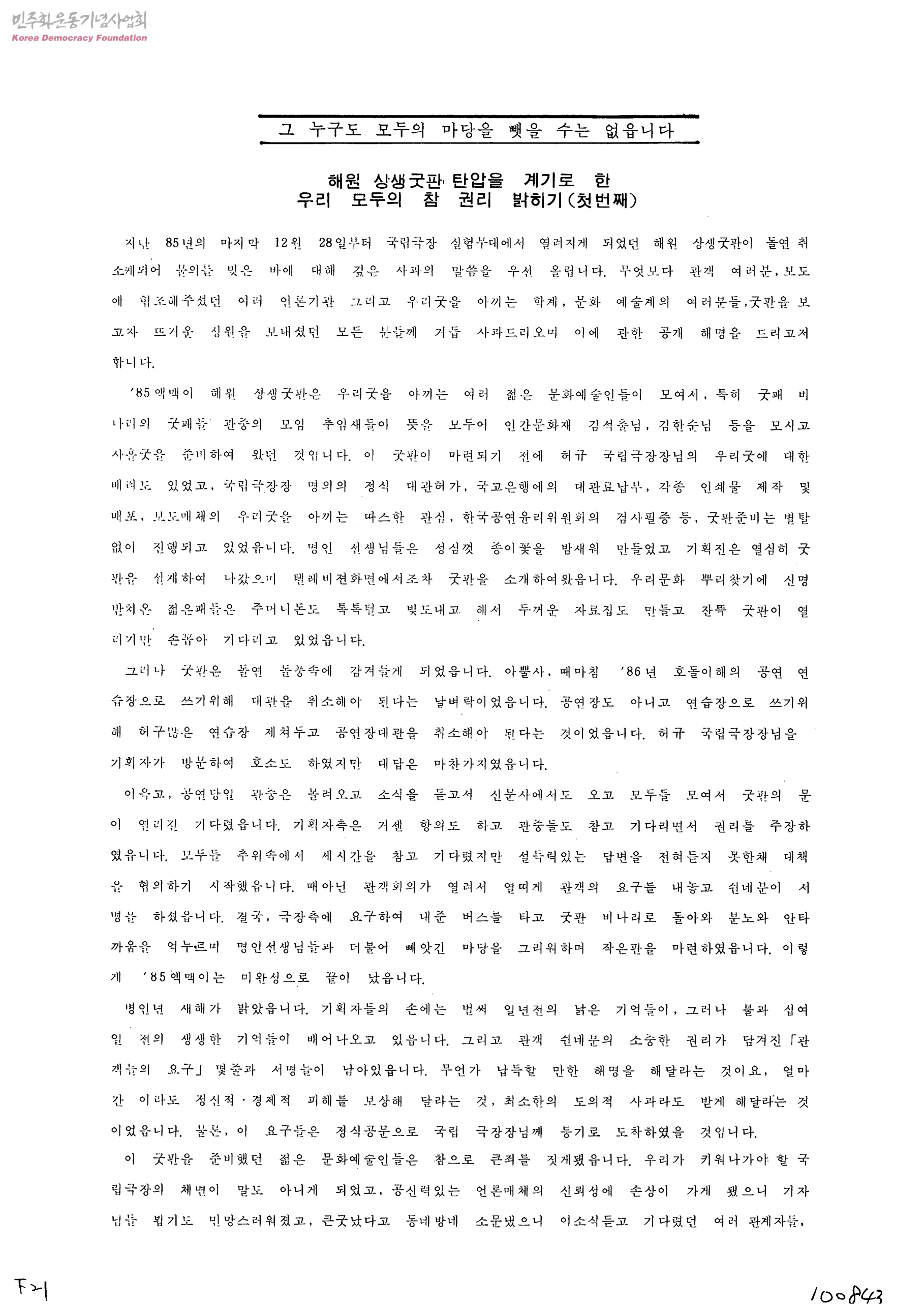 그 누구도 모두의 마당을 뺏을 수 없읍니다-해원 상생굿판 탄압을 계기로 한 우리모두의 참 권리 밝히기(첫번째)