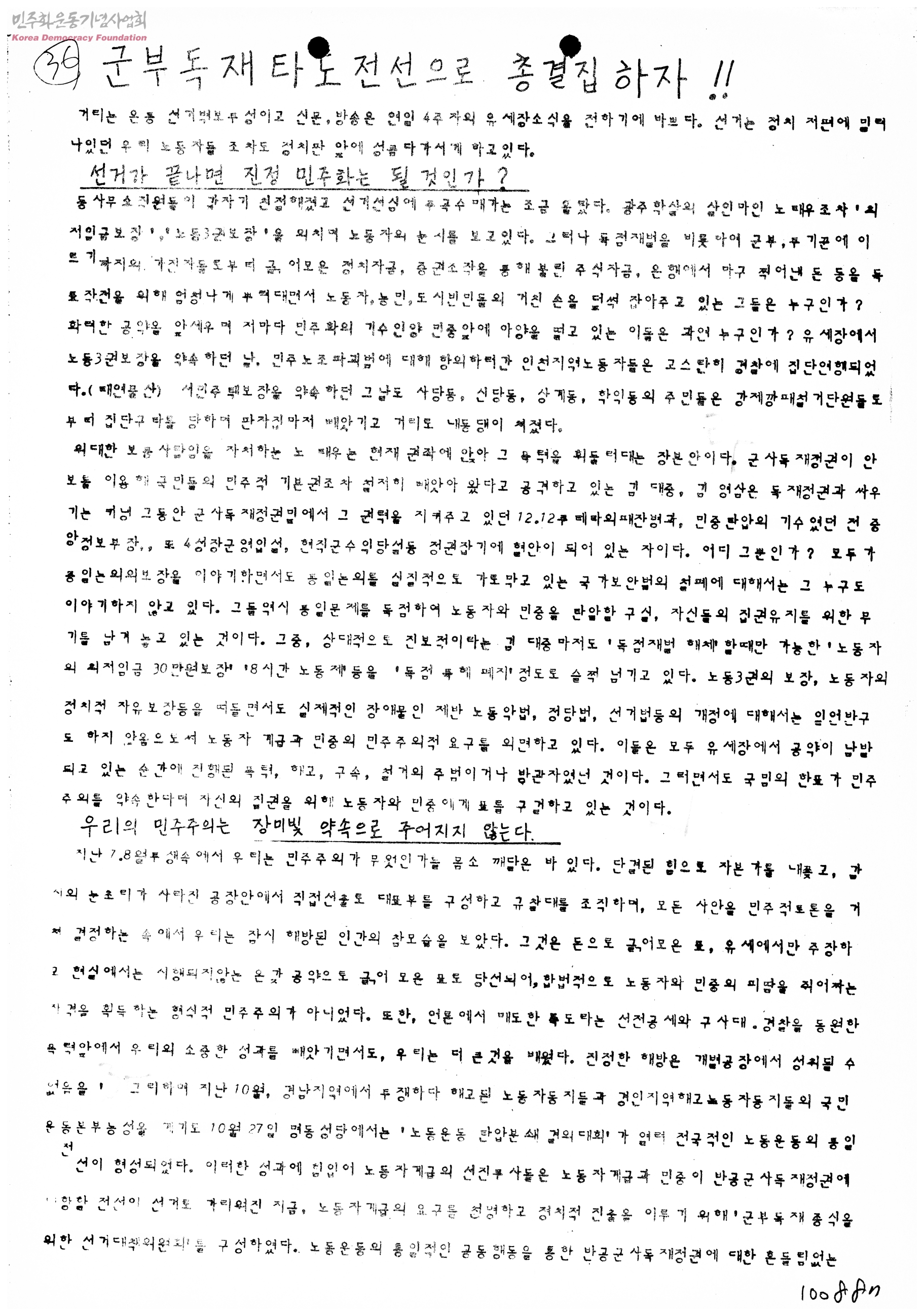 - 민족통일과민주주의를위해투쟁하는노동자일동