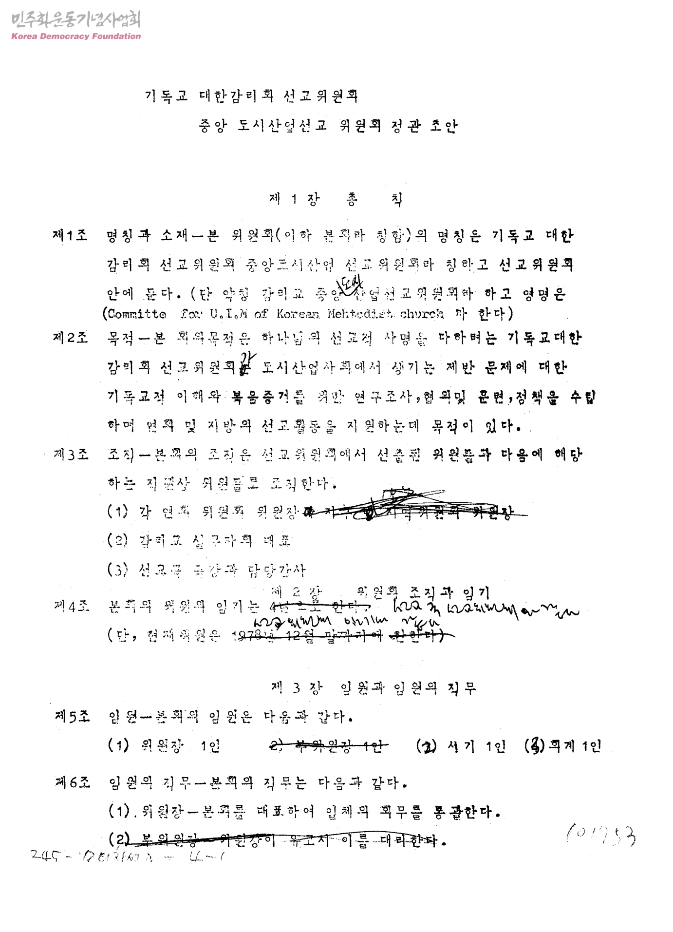기독교 대한감리회 선교위원회 중앙도시산업선교 위원회 정관초안