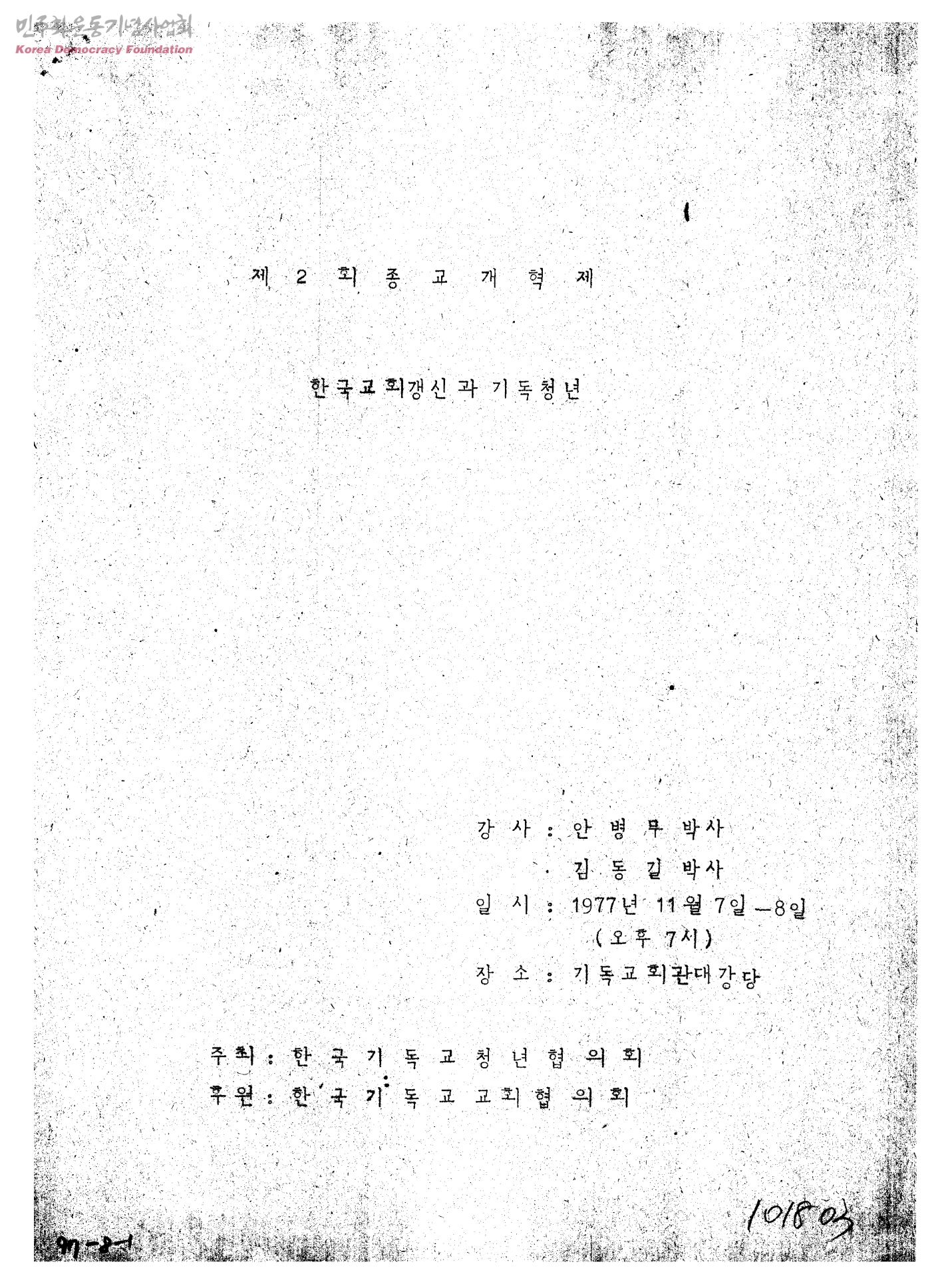 제2회 종교개혁제 한국교회갱신과 기독청년