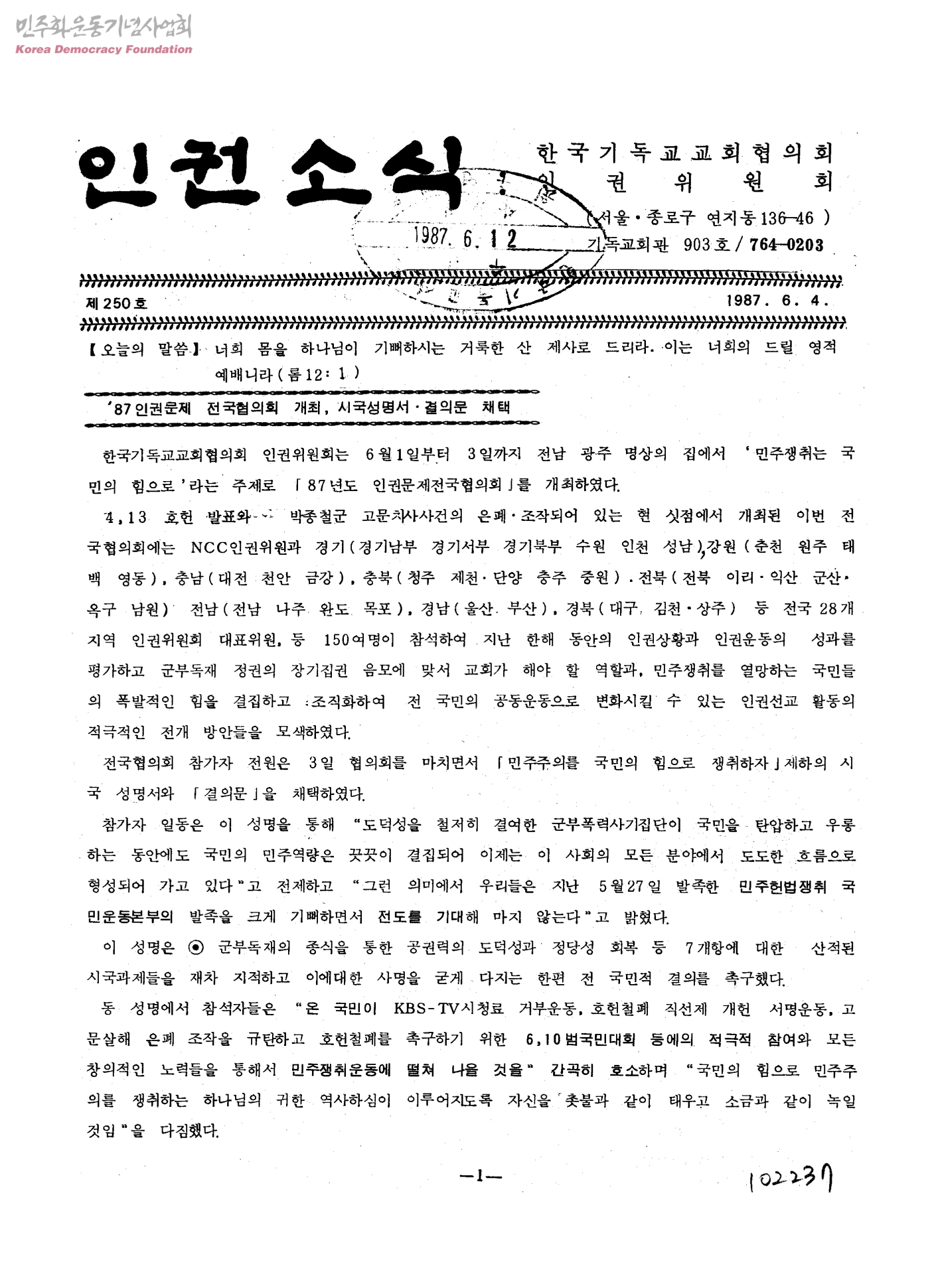 - '87인권문제 전국협의회 개최, 시국성명서와 결의문 채택