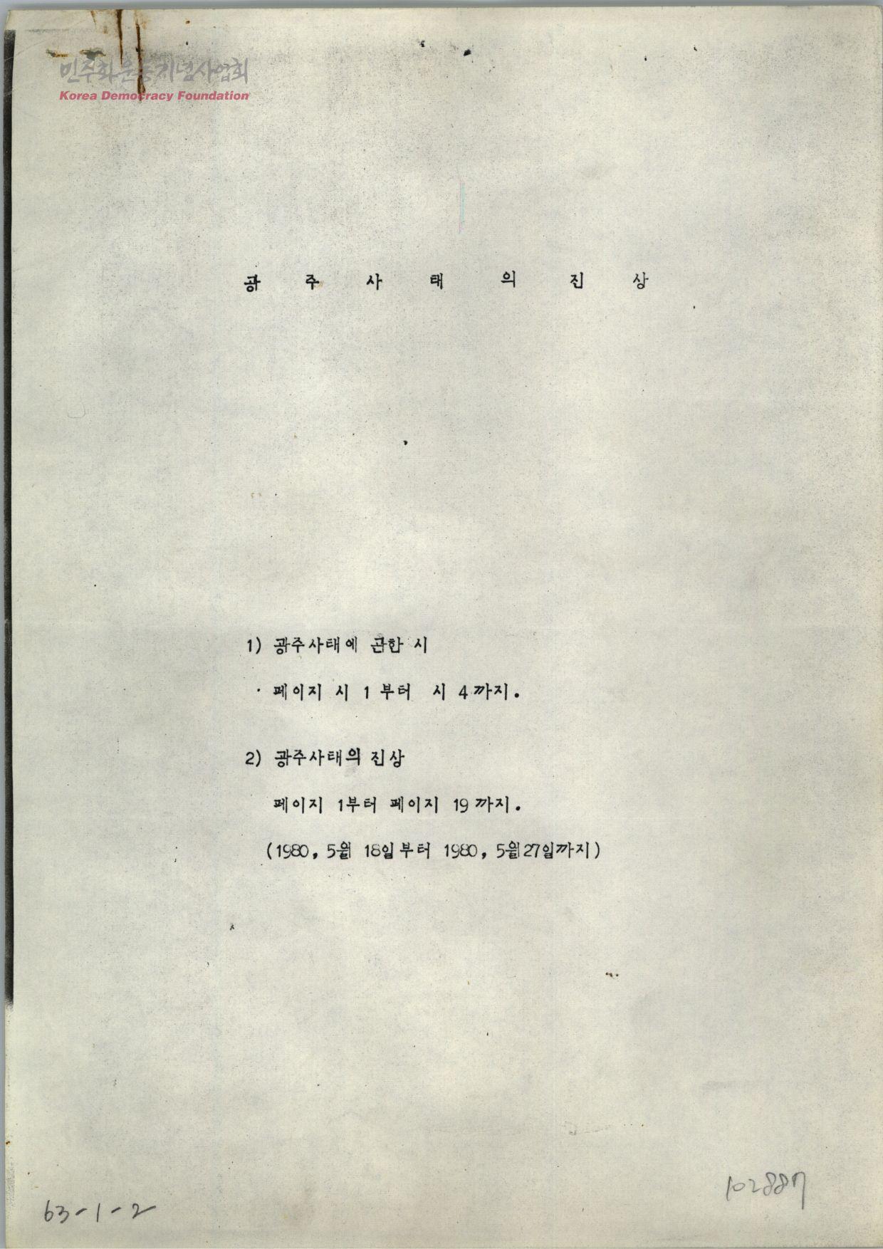- 김준태 시인의 '아아, 광주여! 우리나라의 십자가여!'라는 시와 광주사태를 5월 18일부터 27일까지 날짜와 시간별로 정리한 보고서가 수록되어 있음.
