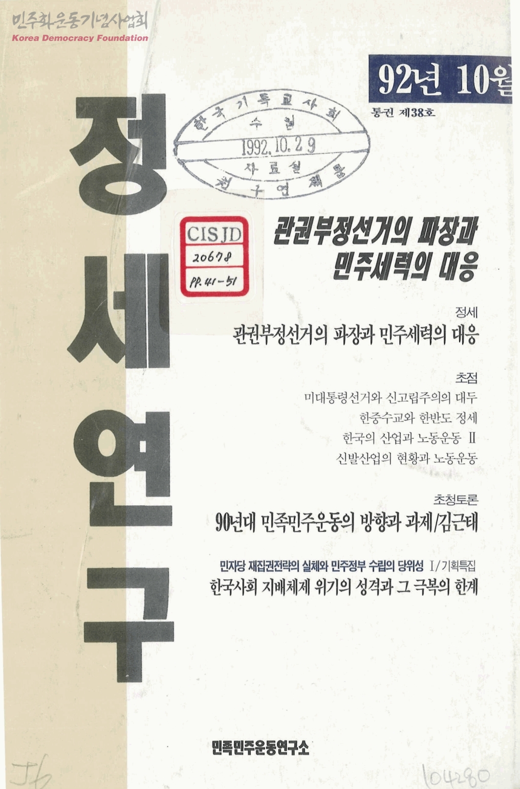 정세연구 제38호 - 관권부정선거의 파장과 민주세력의 대응