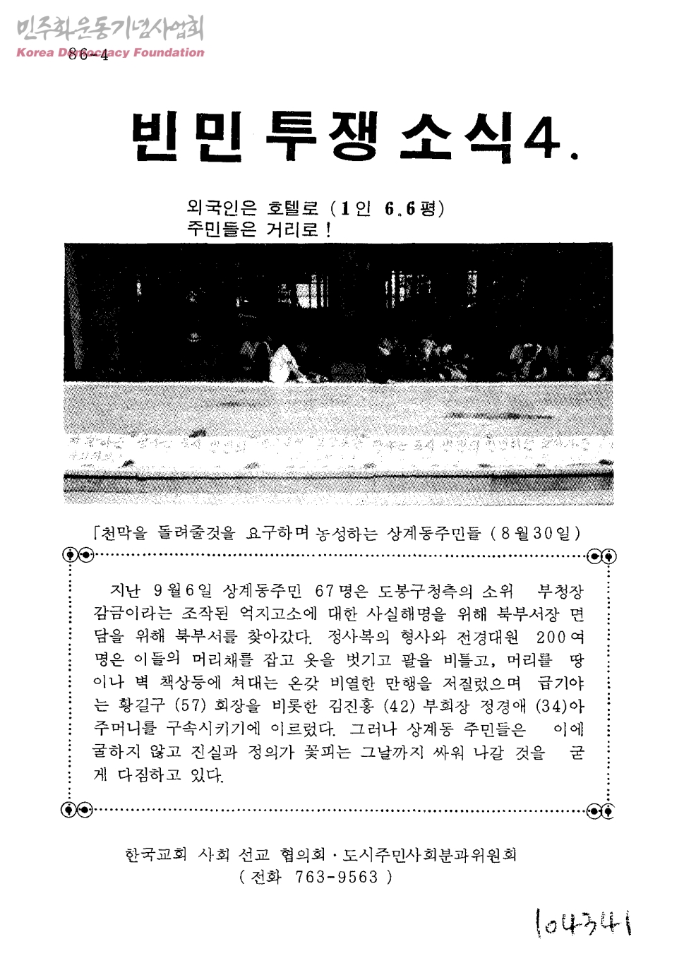 빈민투쟁소식4.-외국인은 호텔로(1인 6.6평) 주민들은 거리로!