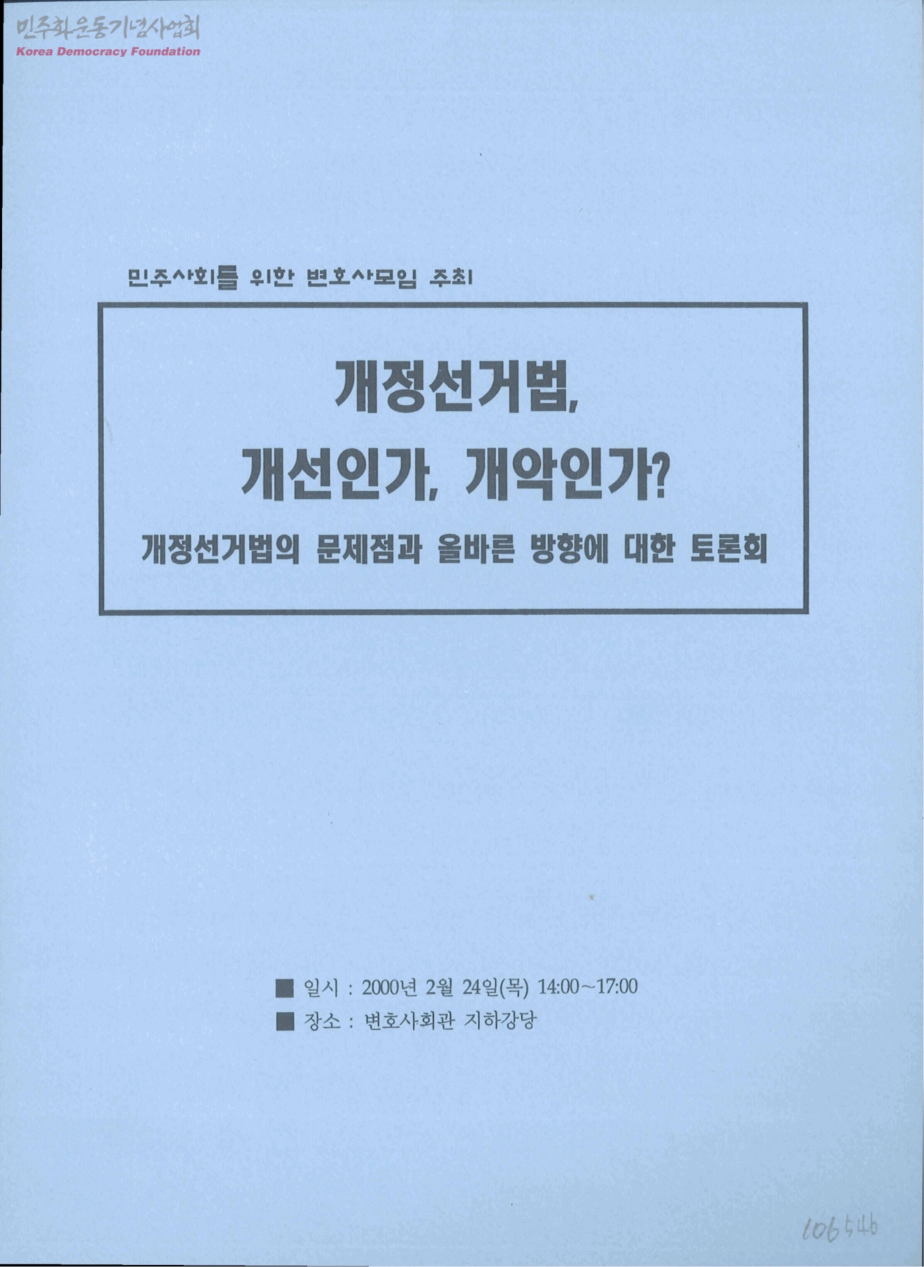 개정선거법, 개선인가, 개악인가?-개정선거법의 문제점과 올바른 방향에 대한 토론회