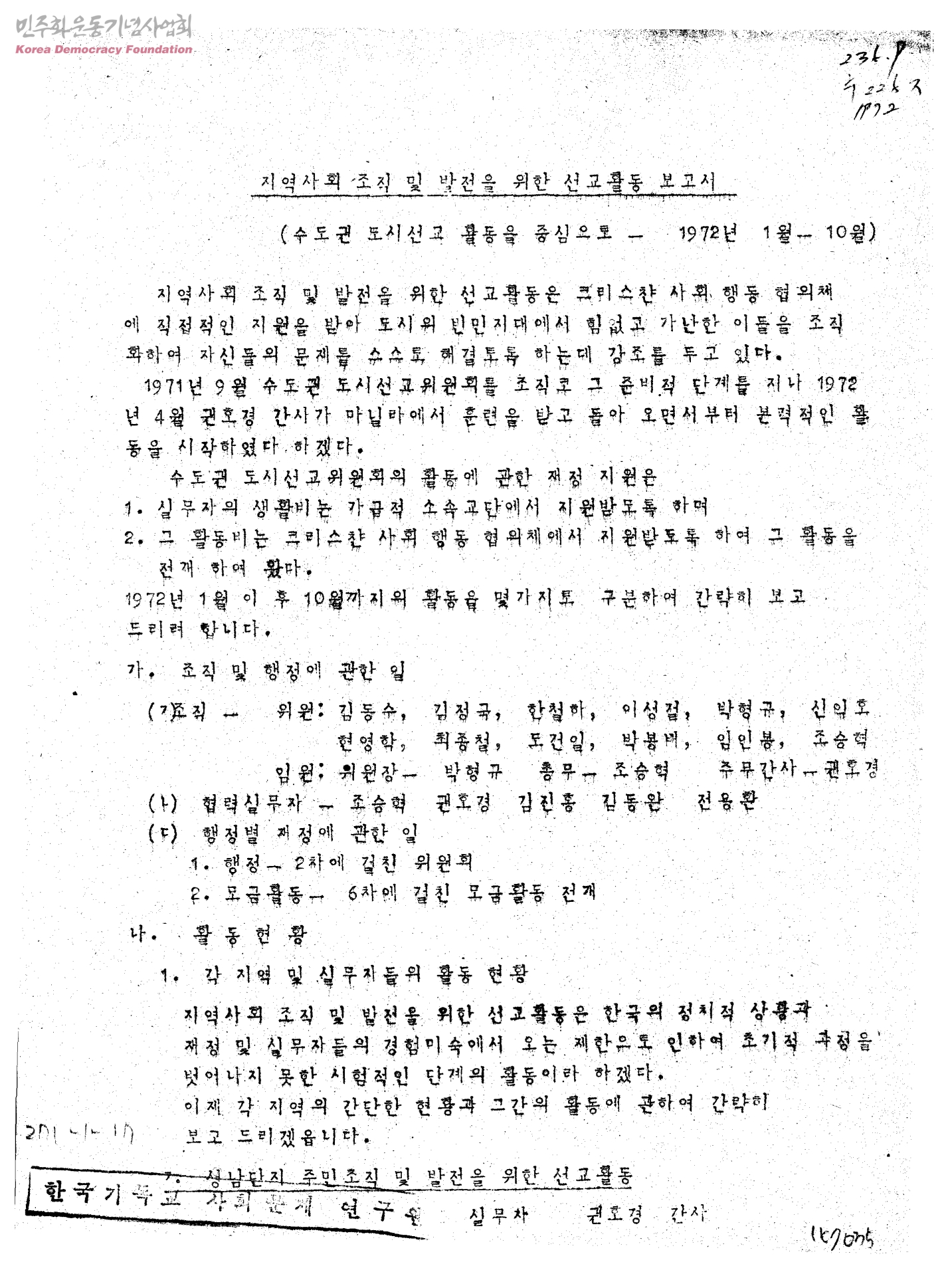 지역사회 조직 및 발전을 위한 선교활동 보고서