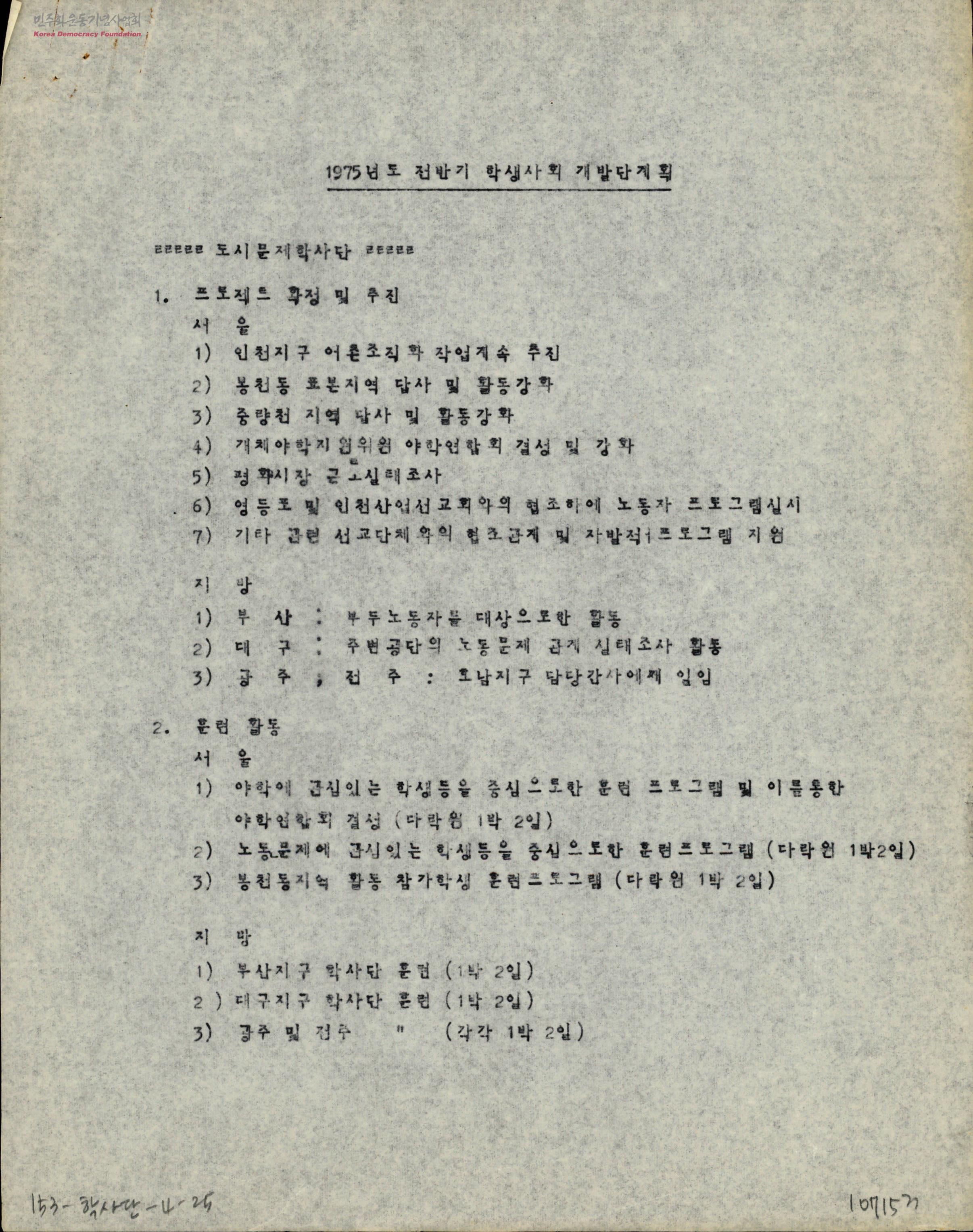 1975년도 전반기 학생사회 개발단계획
