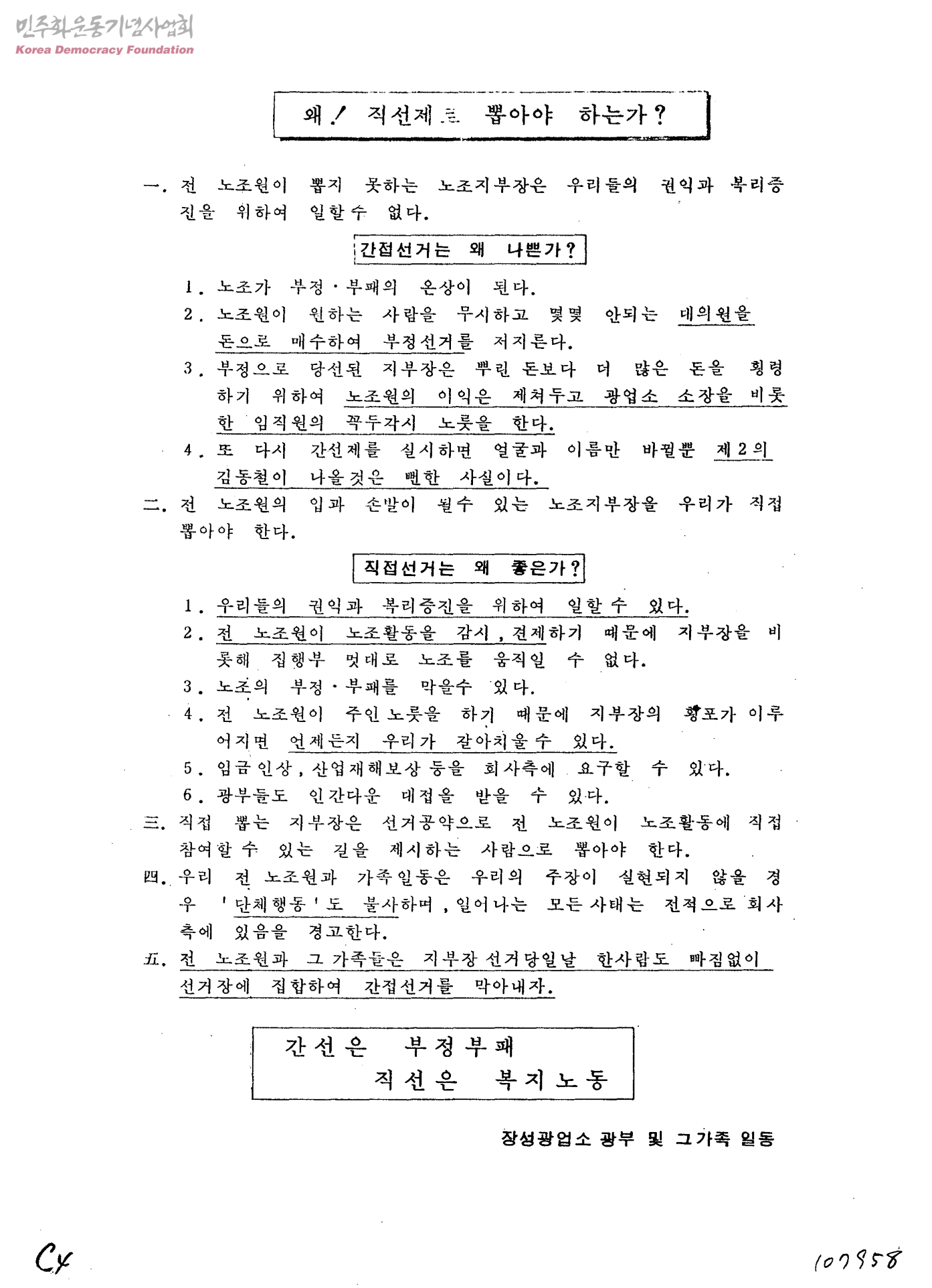 왜! 직선제로 뽑아야 하는가?[장성광업소노동조합관련]