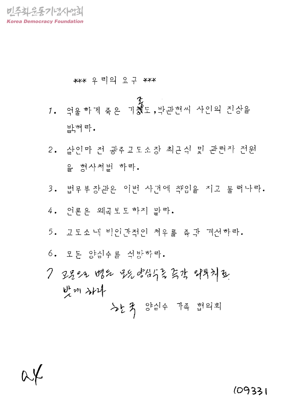 - 생산자 및 기증자가 ‘박용수’인 사진의 사용은 구매신청을 클릭하여 직접 사진 구매 신청을 하실 수 있습니다. 생산자 및 기증자가 ‘경향신문사’인 사진의 사용은 경향신문사 담당자(02-3701-1635)를 통해 구매하실 수 있습니다. 그 외의 생산자 및 기증자는 민주화운동기념사업회 사료관 담당자( hyunchaek@kdemo.or.kr / 02-6440-8961 )에 문의바랍니다.