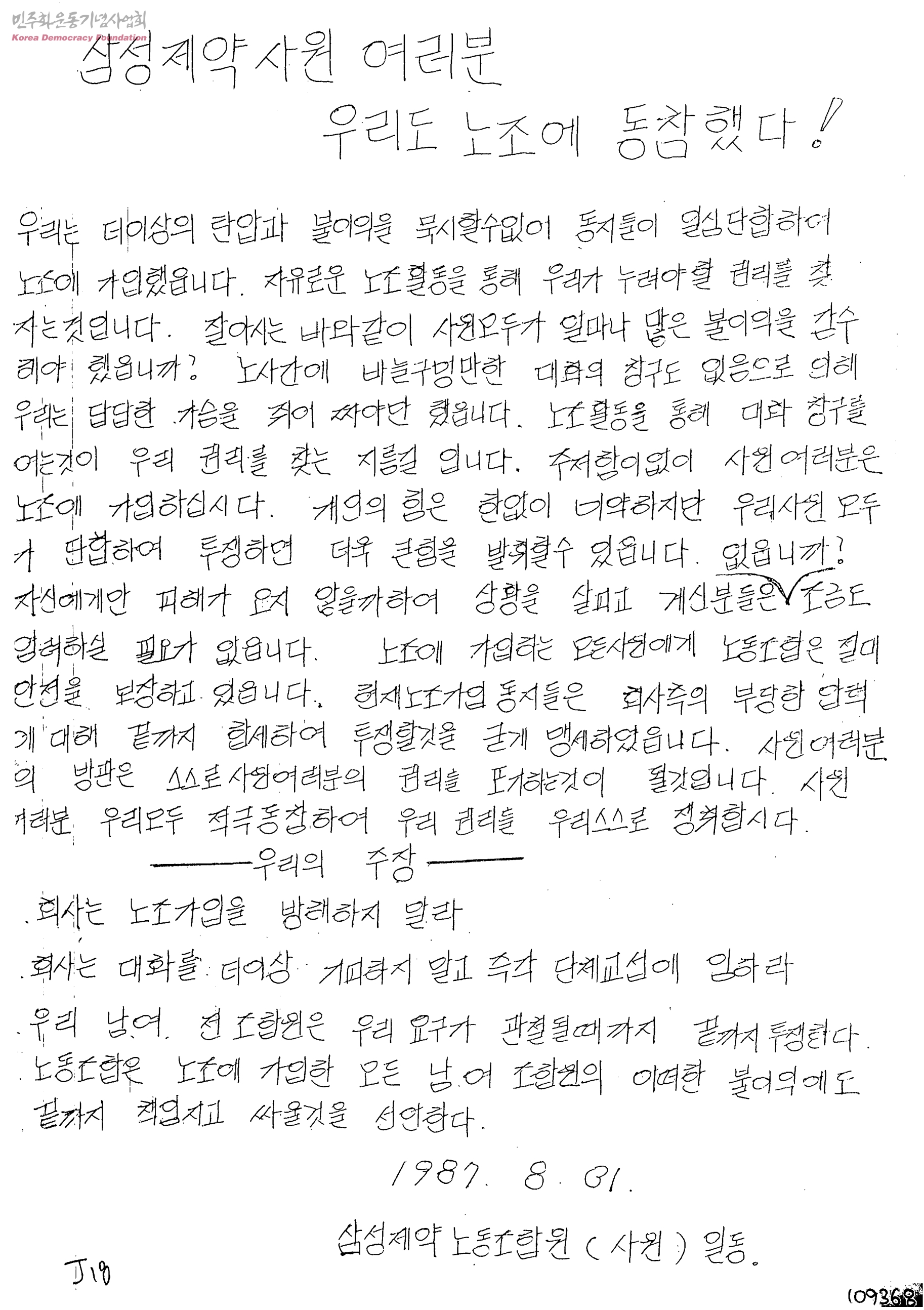 삼성제약사원 여러분 우리도 노조에 동참했다!