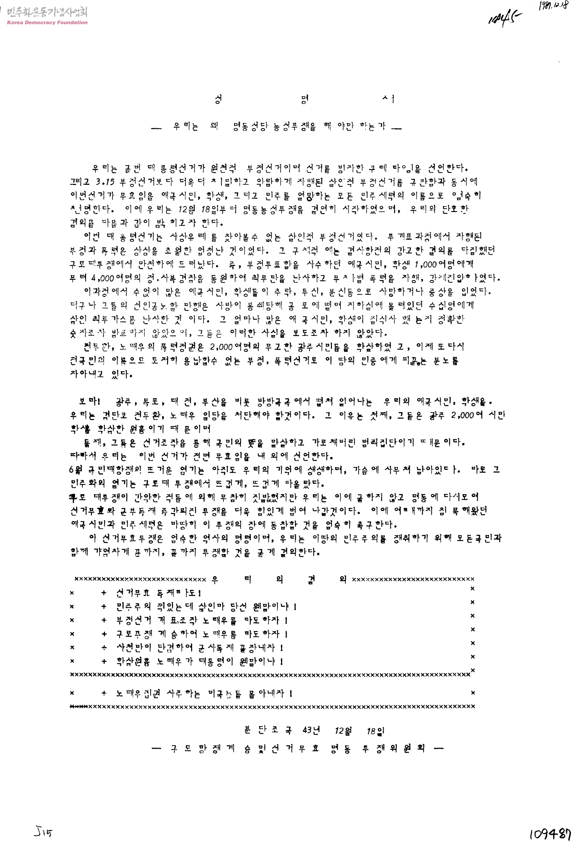 - 구로항쟁계승및선거무효명동투쟁위원회