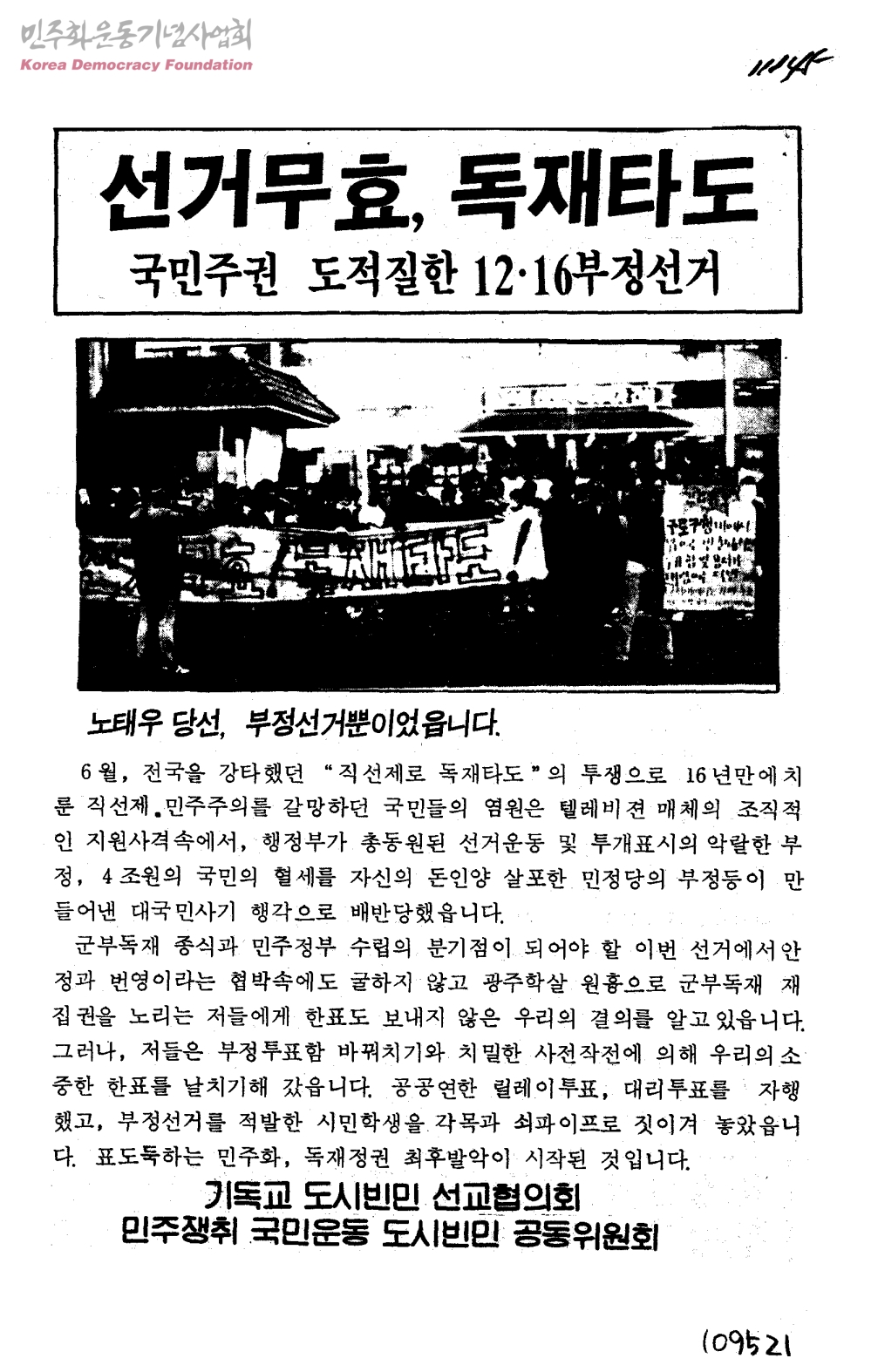 선거무효, 독재타도 국민주권 도적질한 12ㆍ16 부정선거
