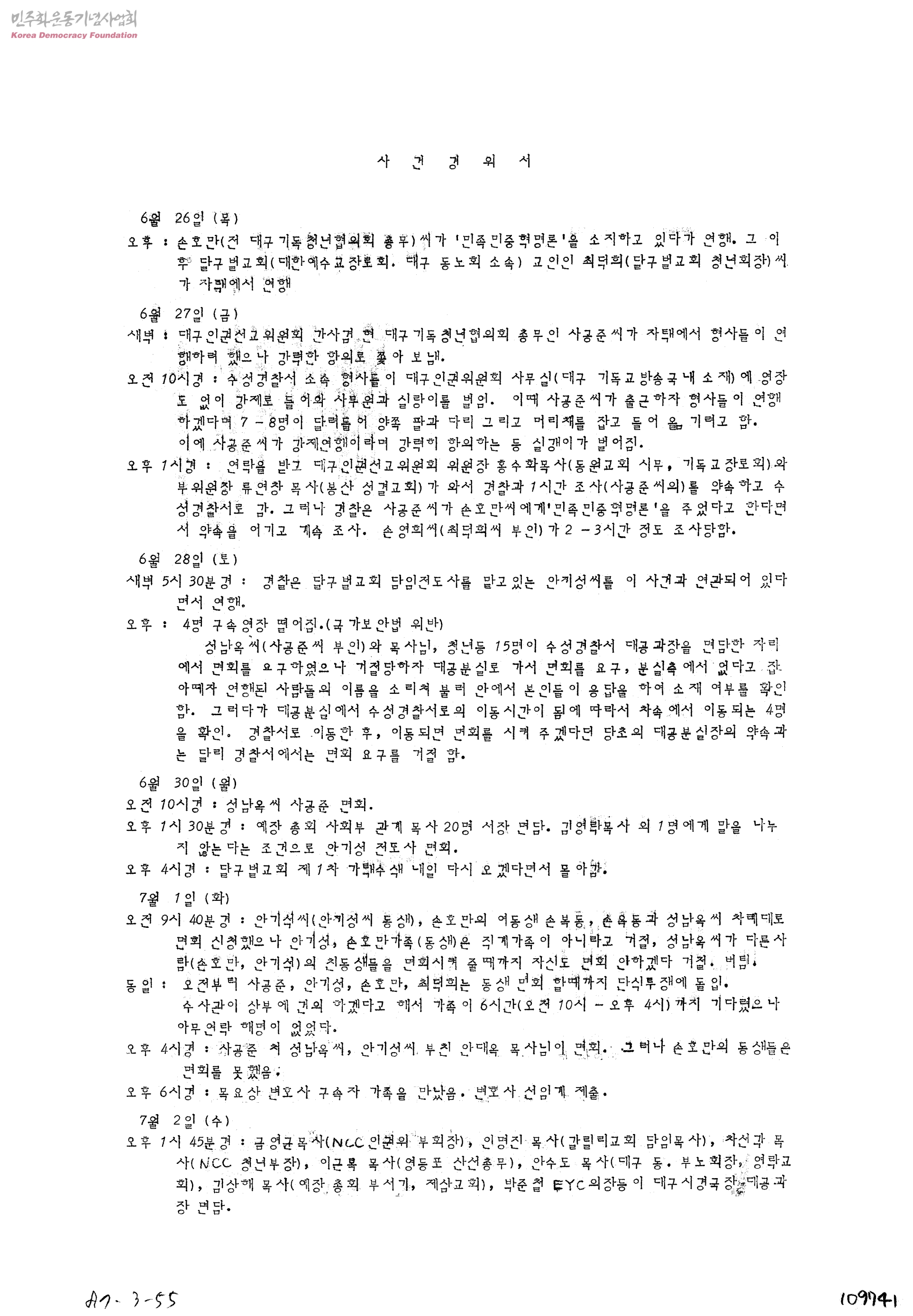 사건경위서[손호만,최덕희,사공준,안기석씨 연행 구속관련]