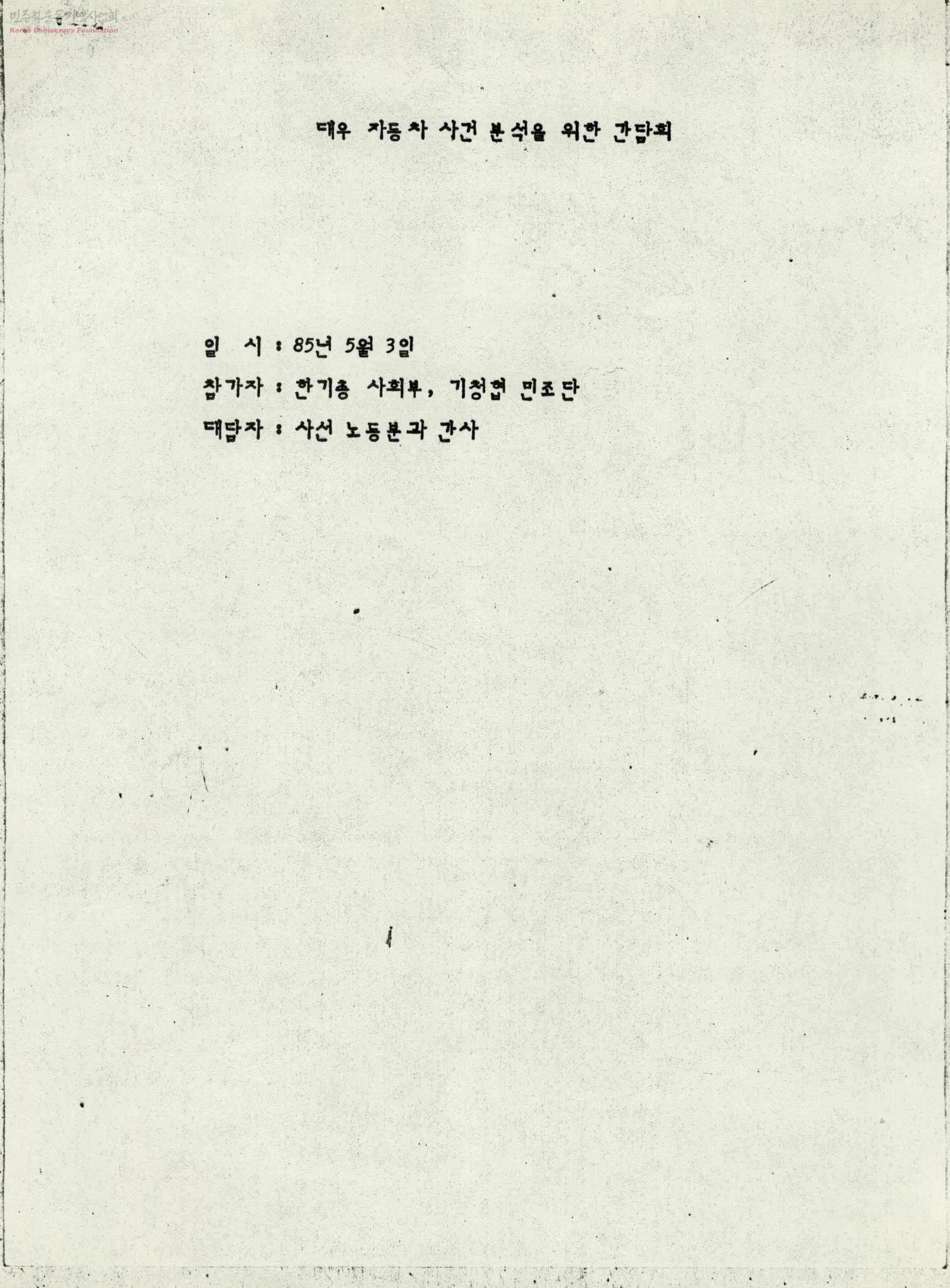 대우 자동차 사건 분석을 위한 간담회