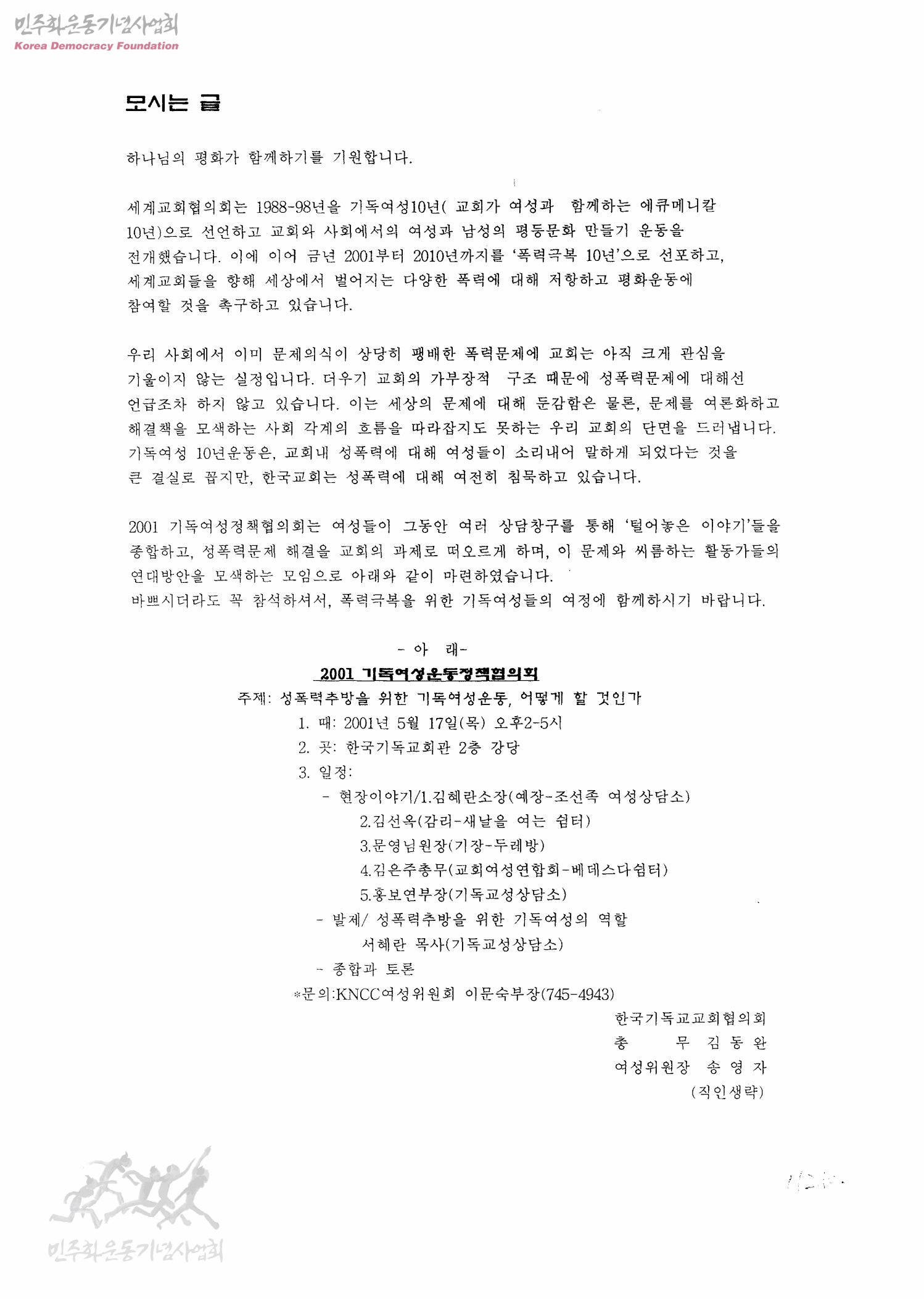 모시는 글 [성폭력추방을 위한 기독여성운동, 어떻게 할것인가를 주제로 한 모임에 대한]