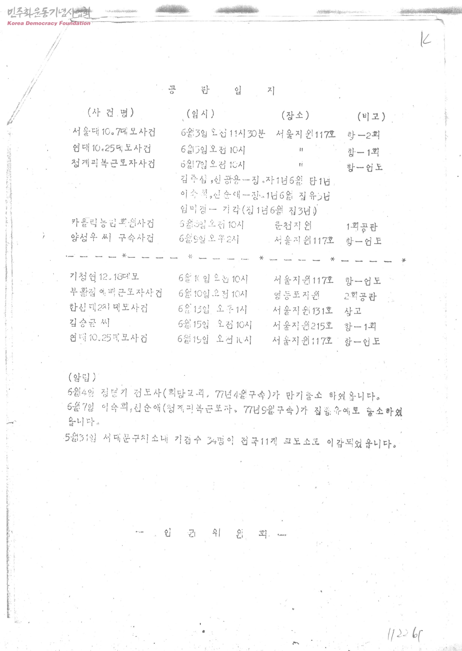 - 서울대10.7데모사건, 연대10.25데모사건, 청계피복근로자사건 등