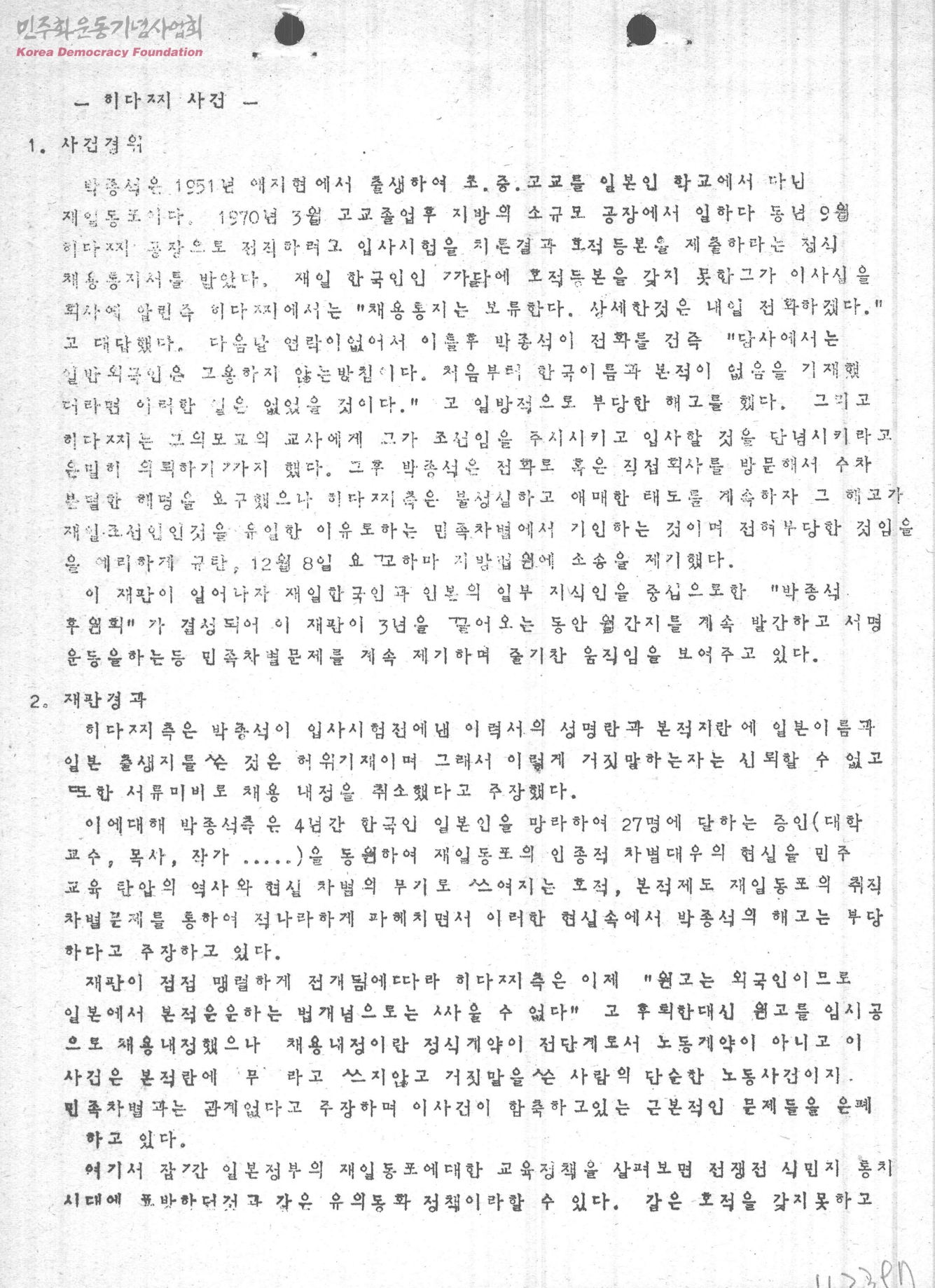 - 1.사건경위 2.재판경과 3.히다찌 제작소의 정체 4.일본에 있어서의 반응
