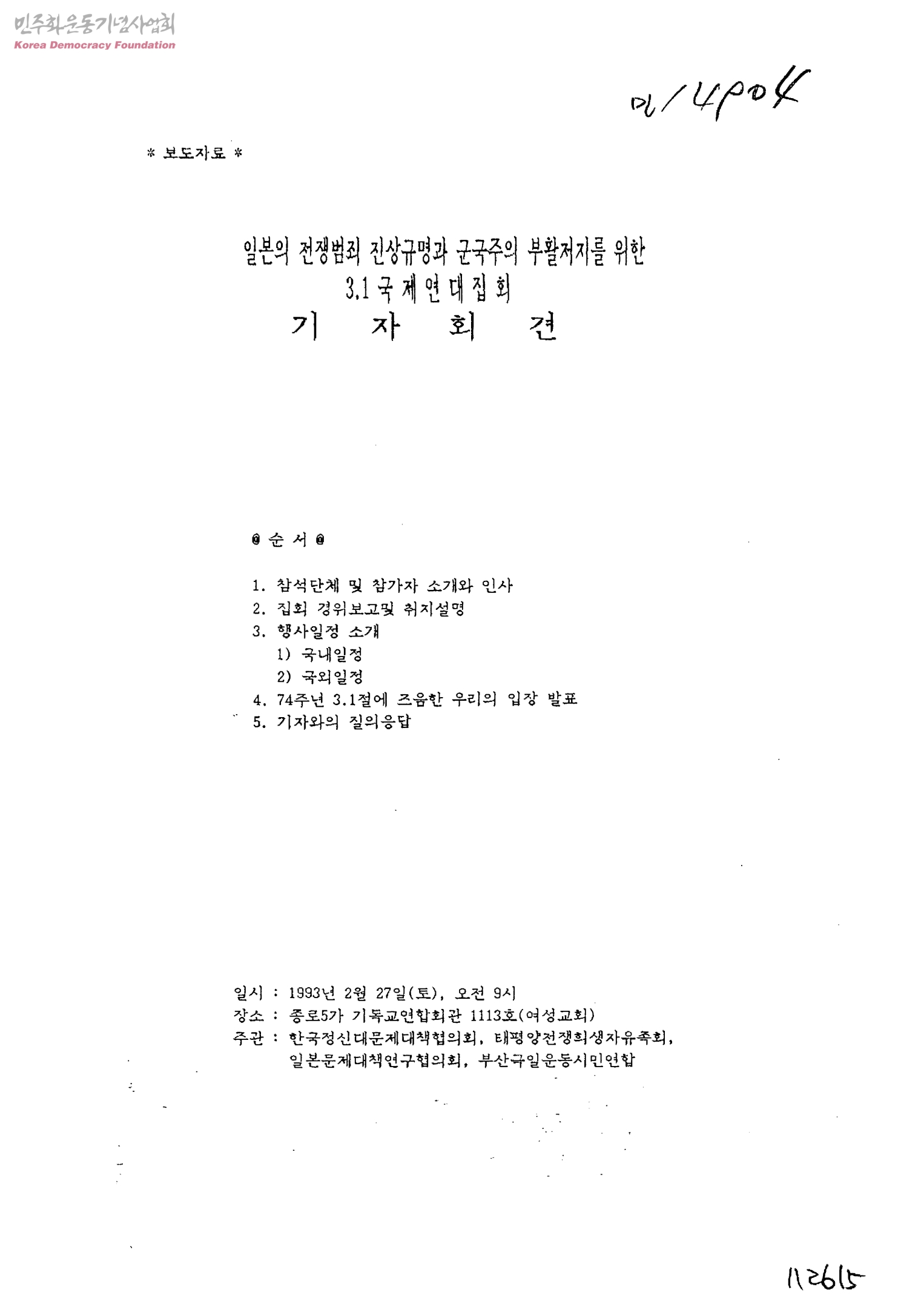 보도자료-일본의 전쟁범죄 진상규명과 군국주의 부활저지를 위한 3.1 국제연대집회 기자회견