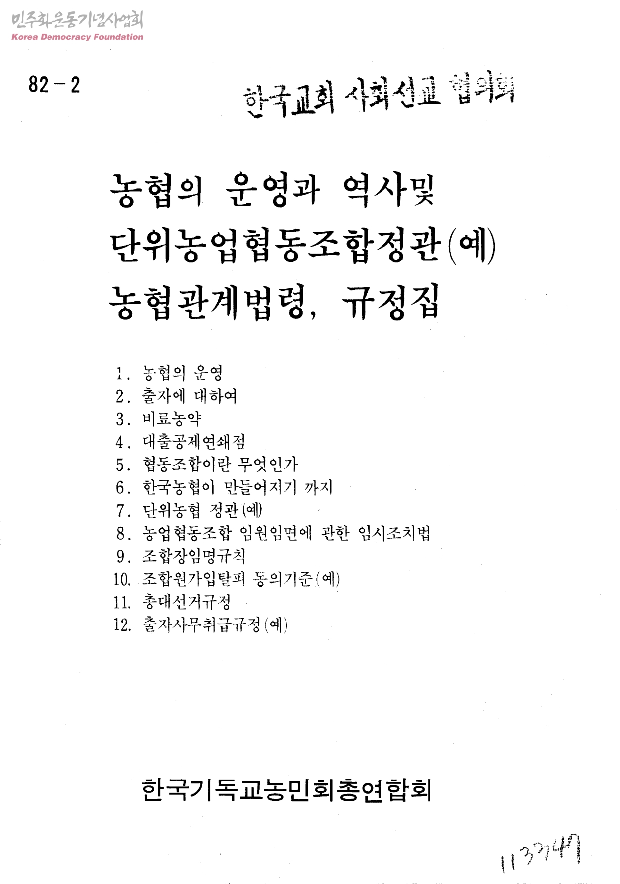 농협의 운영과 역사및 단위농업협동조합정관(예) 농협관계법령, 규정집