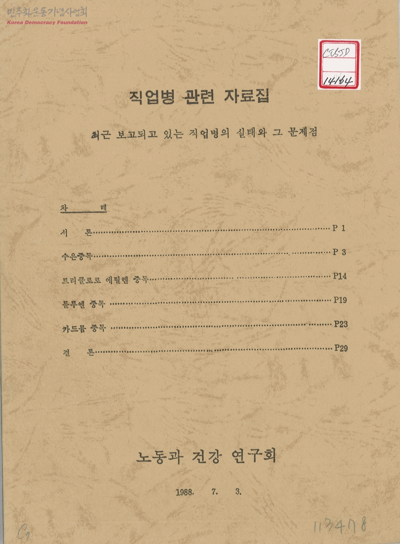 직업병 관련 자료집-최근 보고되고 있는 직업병의 실태와 그 문제점