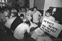 - 생산자 및 기증자가 ‘박용수’인 사진의 사용은 구매신청을 클릭하여 직접 사진 구매 신청을 하실 수 있습니다. 생산자 및 기증자가 ‘경향신문사’인 사진의 사용은 경향신문사 담당자(02-3701-1635)를 통해 구매하실 수 있습니다. 그 외의 생산자 및 기증자는 민주화운동기념사업회 사료관 담당자( hyunchaek@kdemo.or.kr / 02-6440-8961 )에 문의바랍니다.