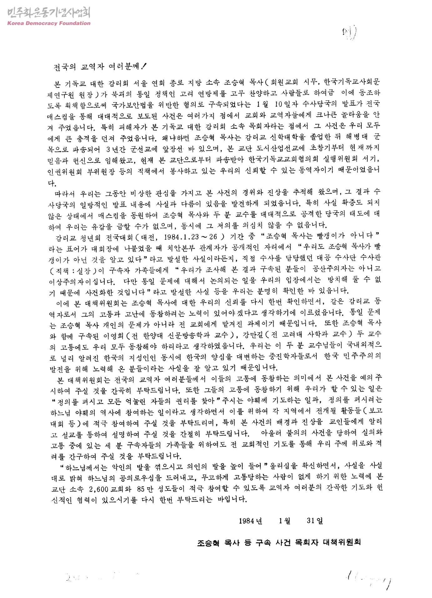 [조승혁목사 구속 관련하여 전국의 교역자에게 드리는 글]